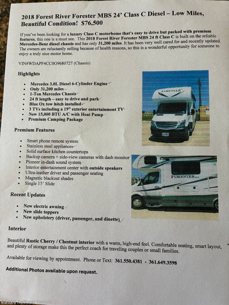 This 2018 Forest River Forester MBS is located in Victoria, Texas. Please call 1-800-320-9557 and mention listing id: 182663.