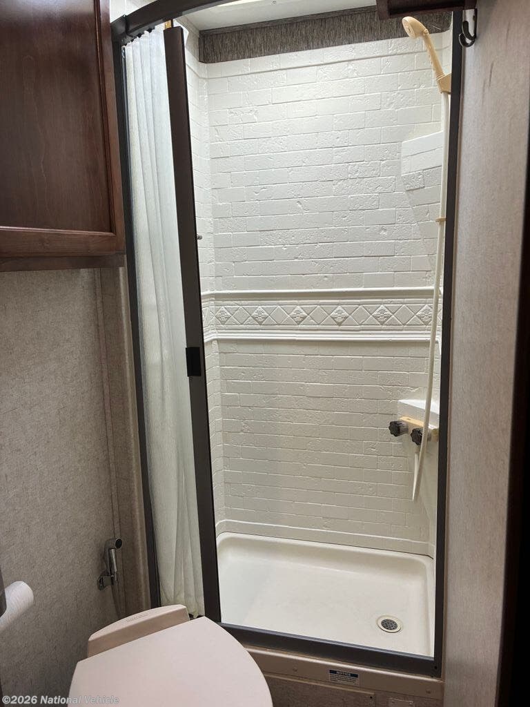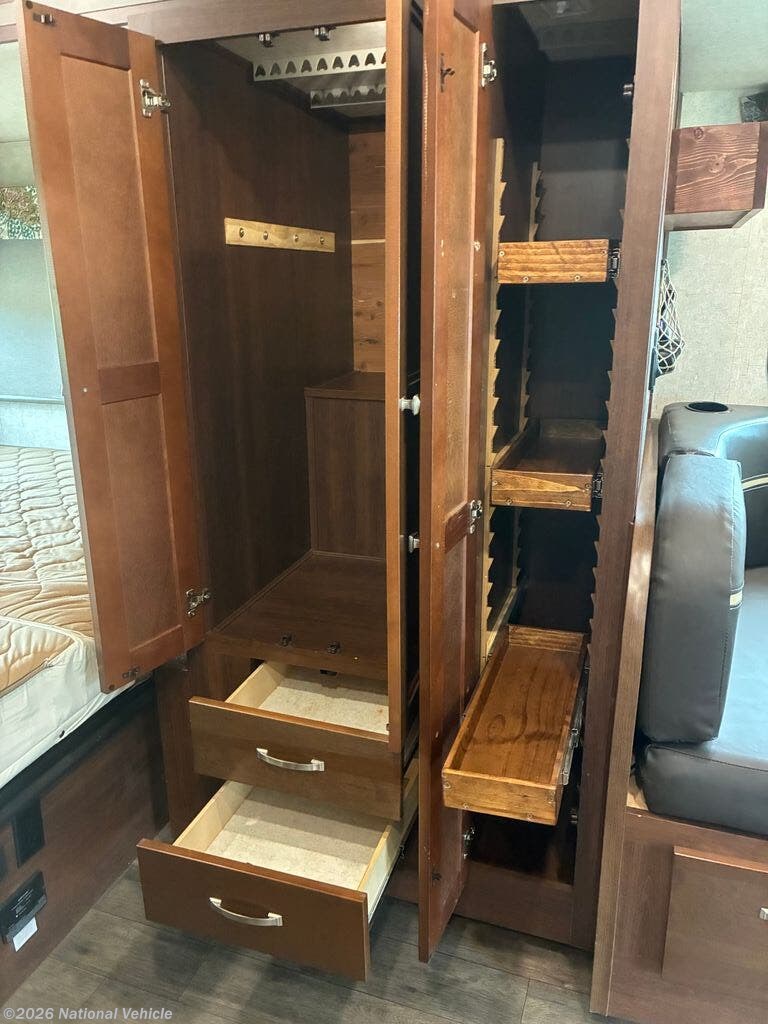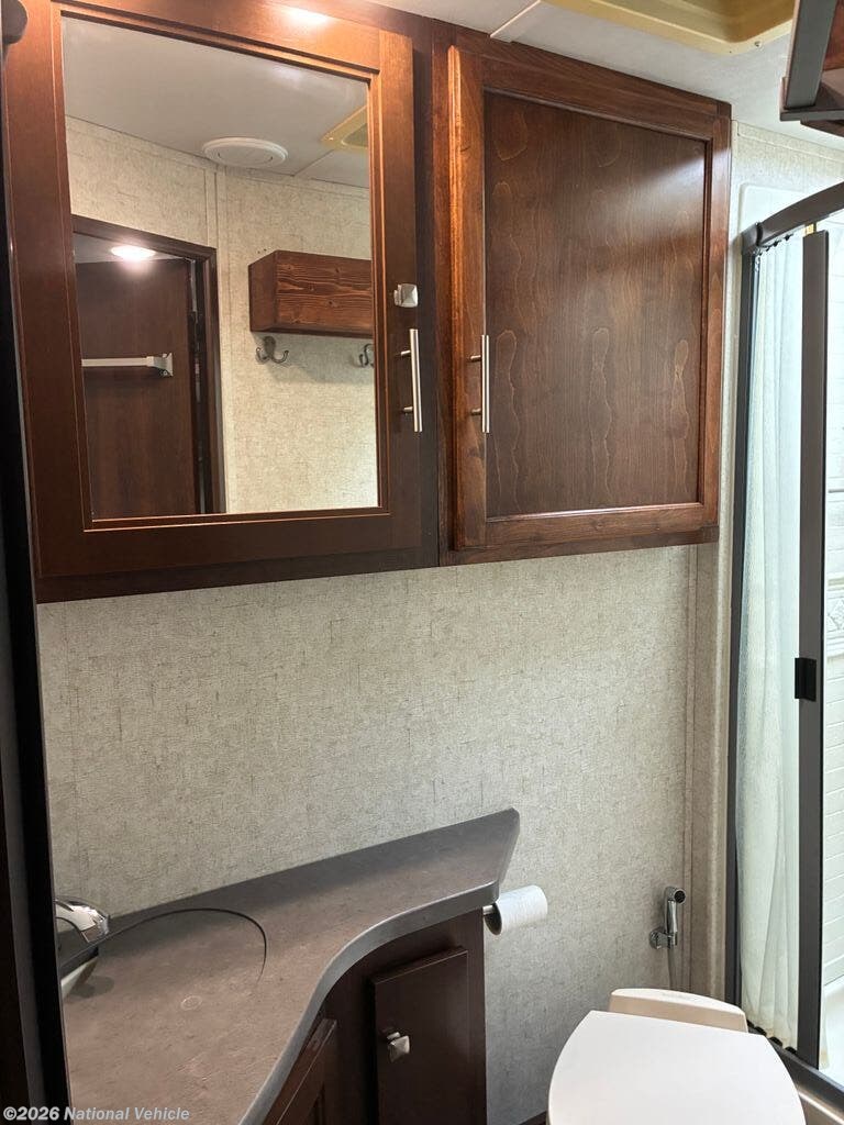 At the rear, you?ll find a spacious full bathroom with a large shower, vanity, and toilet, providing a level of comfort and convenience rarely found in a motorhome of this size. Thoughtful storage throughout the coach ensures you?ll have room for all your travel essentials.