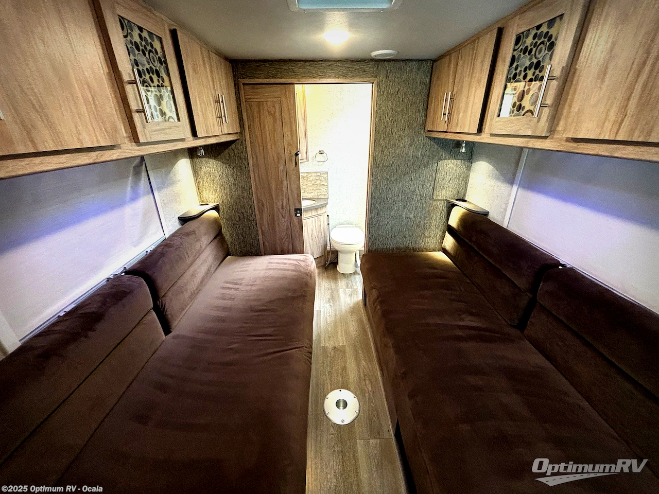 This Forster TS motorhome model 2371 is the ONLY class C in the Forester series that has two twin beds in the back, they can also fold down into a queen bed if you would like them to. The full rear bath gives you some privacy and a little more room for changing. Take this unit out on your next weekend get-a-way, and when it is time to pack up and go home, it will be super quick and easy to put your things away and drive off. There is plenty of overhead cabinetry for your things.