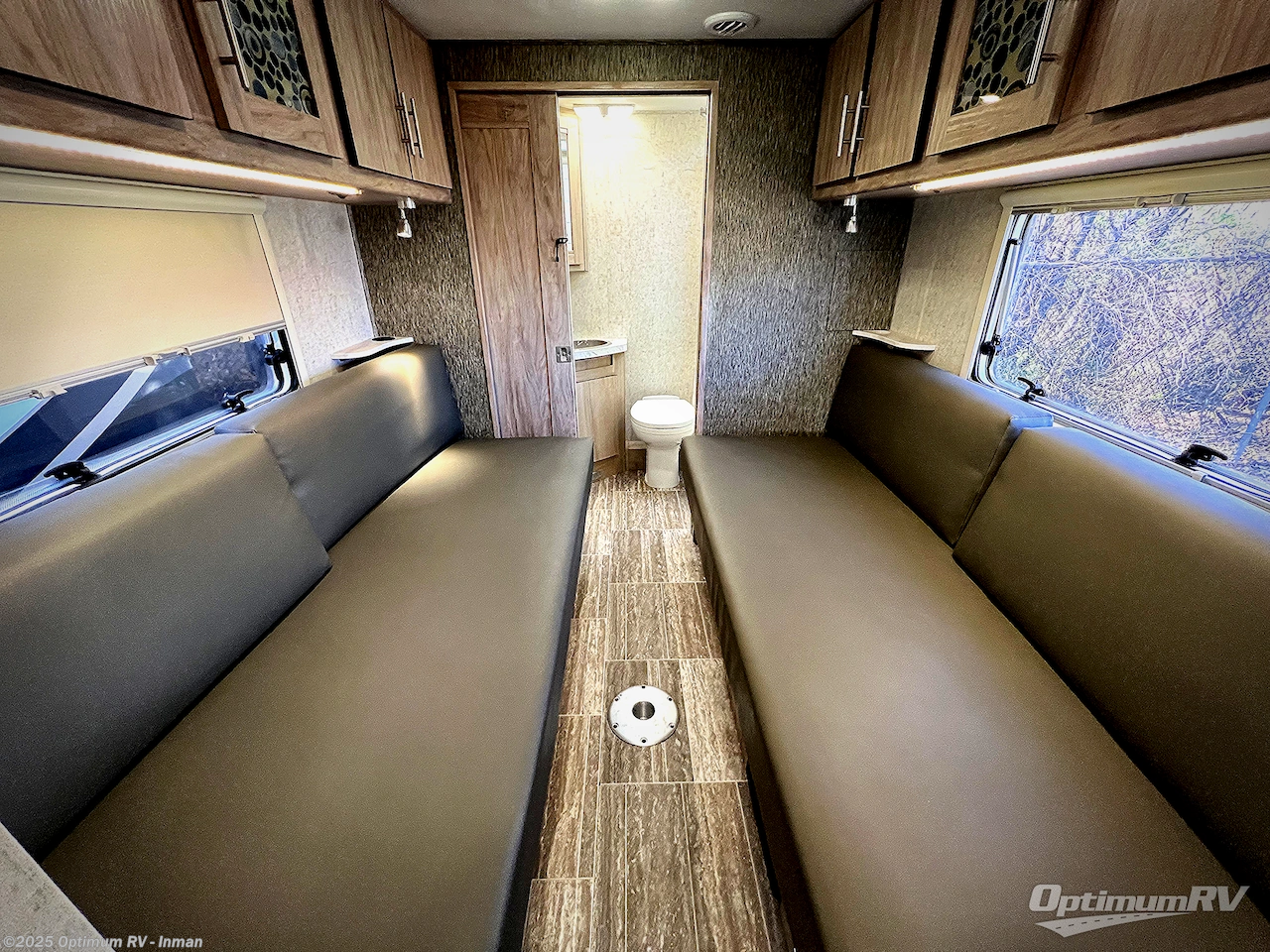 This Forster TS motorhome model 2371 is the ONLY class C in the Forester series that has two twin beds in the back, they can also fold down into a queen bed if you would like them to. The full rear bath gives you some privacy and a little more room for changing. Take this unit out on your next weekend get-a-way, and when it is time to pack up and go home, it will be super quick and easy to put your things away and drive off. There is plenty of overhead cabinetry for your things.