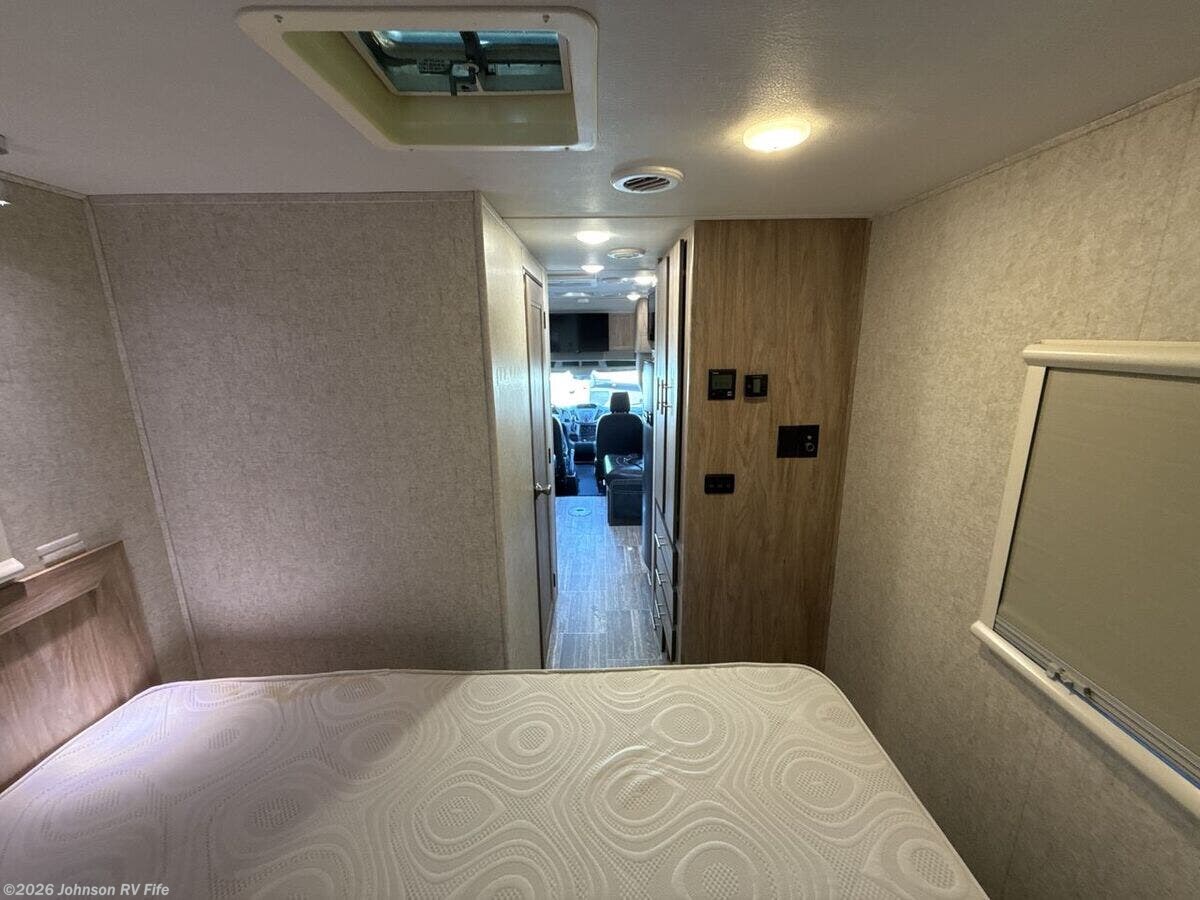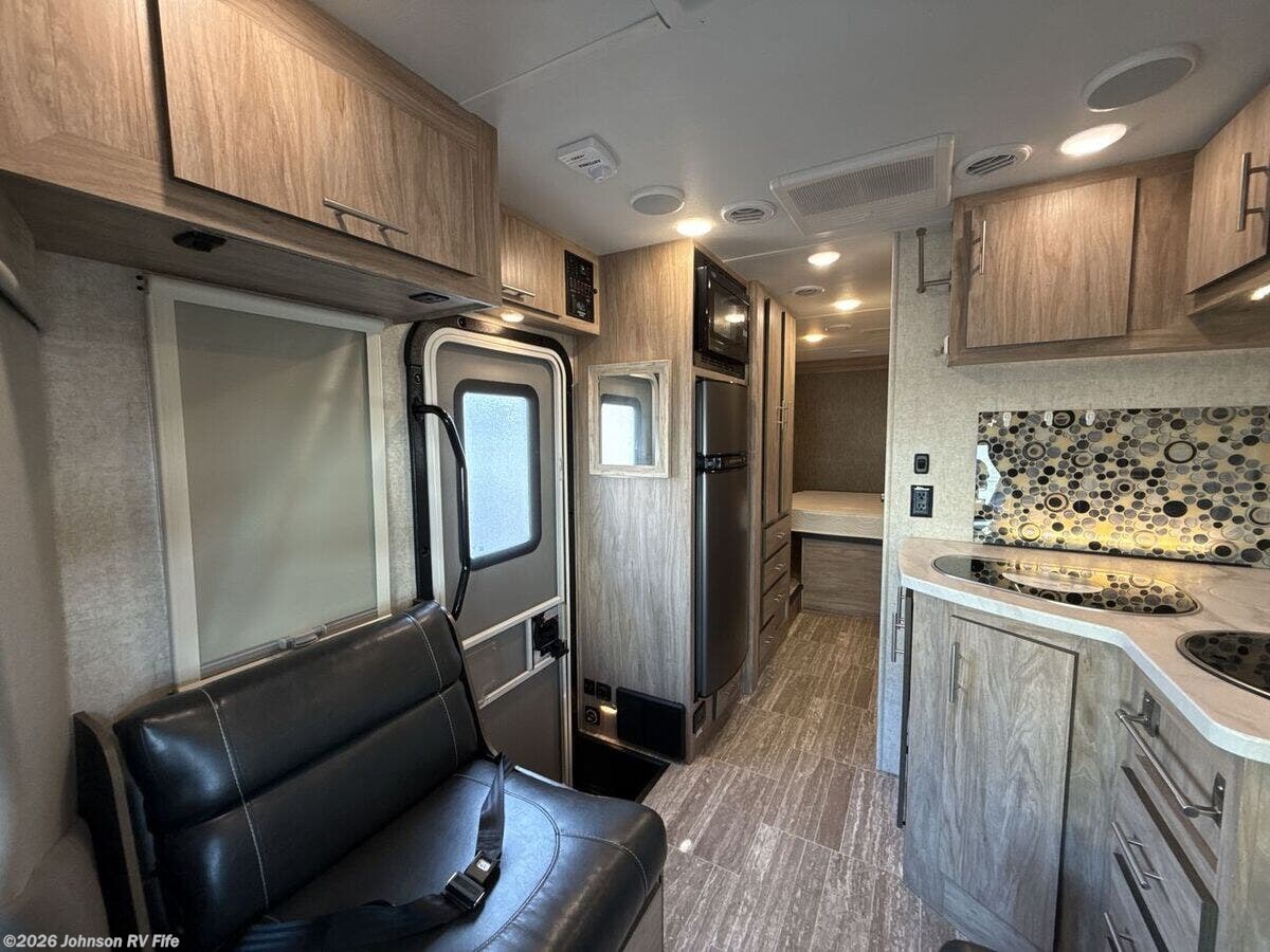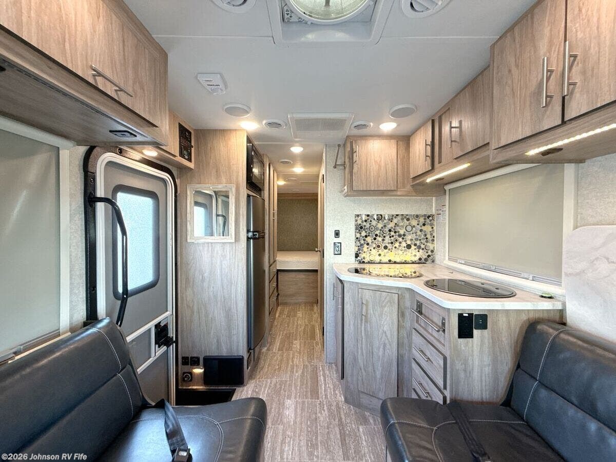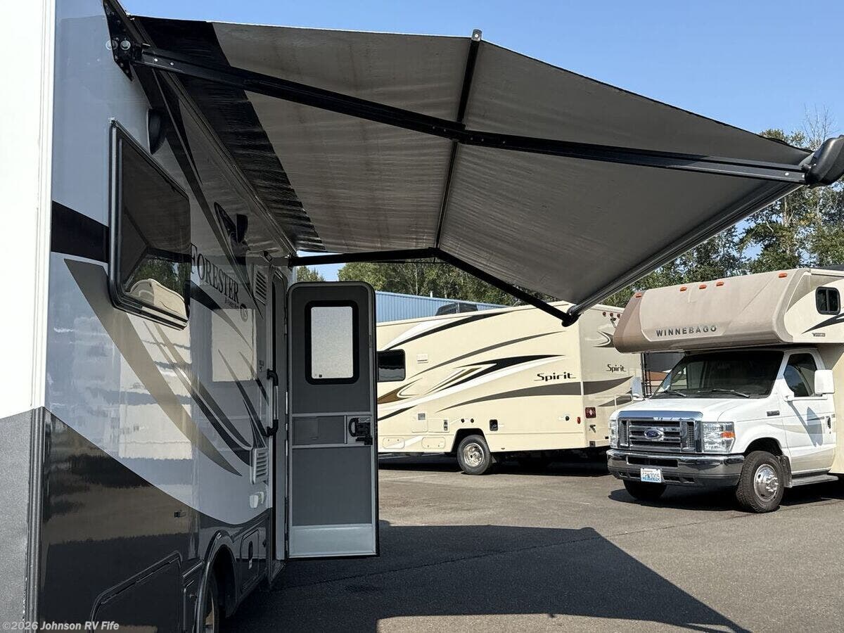 The 2018 Forest River Forester TS is a versatile and well-equipped Class C RV, designed to offer comfort and convenience for travelers seeking adventure on the road. Built on a sturdy Ford Transit chassis, this RV combines functionality with modern amenities, making it an ideal choice for both short getaways and extended road trips. Under the hood, the Forester TS is powered by a robust 3.7L V6 gas engine, delivering 275 horsepower. This ensures a smooth and reliable driving experience, whether you're navigating city streets or cruising down the highway. The vehicle features stainless steel wheel liners and a spare tire, adding to its durability and readiness for any journey. The cab area is designed with driver comfort and convenience in mind. Key features include: - Keyless entry - Power door locks and windows - Ultra leather cab seats - Color backup camera monitor - Side view cameras - Cab area privacy curtain The living spaces in the Forester TS are thoughtfully designed to maximize comfort and functionality. Highlights include: - Power patio awning with LED strip - Integrated entry step - Frameless tinted windows - MaxxAir fan with rain and temperature sensors For dining and meal preparation, the RV is equipped with: - Movable dinette table - Pantry - Sink - LP/110v 5.3 cubic foot refrigerator - Two-burner cooktop - Convection microwave The sleeping area offers a restful retreat with: - Overbed storage - Upgraded memory foam mattress - Bedspread - Wardrobe The bathroom is both practical and stylish, featuring: - Medicine cabinet - Vanity sink - Arcadia shower door - Flexible extension shower head - Shower skylight - Composite toilet with sprayer - Power exhaust fan Mechanically, the Forester TS is equipped with features to ensure a seamless travel experience: - Coach battery disconnect switch - Deep cycle battery - Solar prep - 9.8-gallon LP capacity - 30-amp detachable service cord - 60-amp Progressive Dynamics converter - 2.5 Onan LP generator - Automatic generator transfer switch - 110v GFI protected exterior outlet - 13.5k ceiling ducted roof AC - Truma Combi furnace water heater - Water filtration system - Water heater bypass - Black tank flush - Outdoor shower The coach build of the Forester TS is designed for durability and efficiency, featuring: - Aluminum framed laminated sidewalls - Block foam insulation - Gelcoat exterior fiberglass - Painted side skirt - One-piece fiberglass front cap - Crowned fiberglass roof - LED exterior lights - Slideout topper awnings - Rotocast storage compartments Overall, the 2018 Forest River Forester TS is a well-rounded RV that combines comfort, convenience, and reliability, making it an excellent choice for those looking to explore the open road with all the comforts of home. ??
