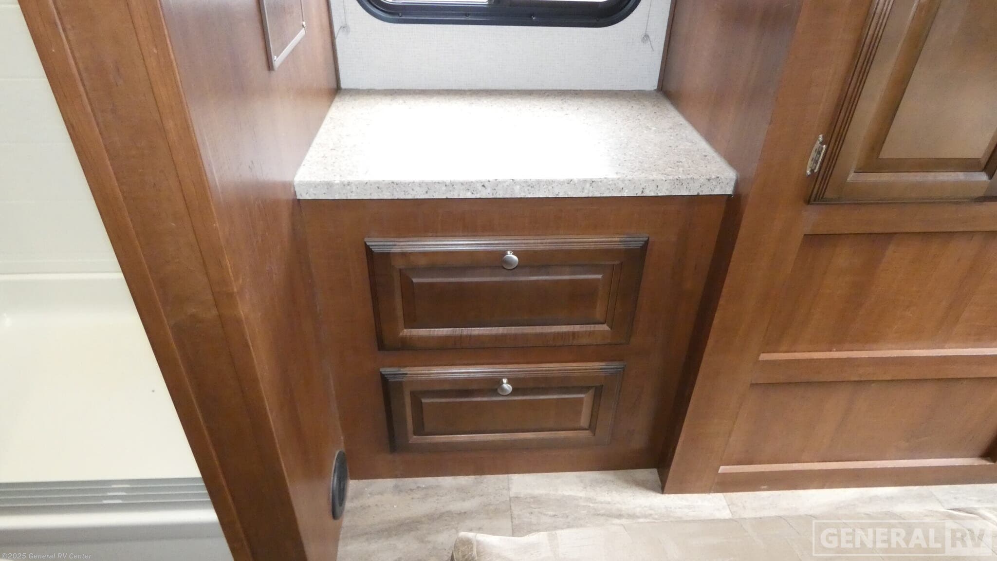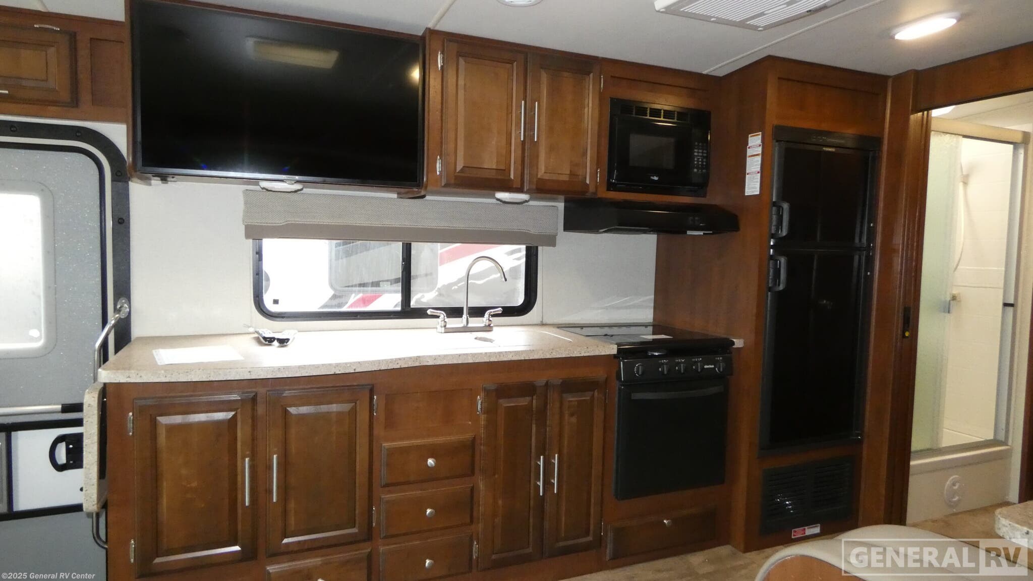 Forest River Georgetown 3 Series class A motor home 30X3 highlights: Double Slide Outs King Bed Passenger Work Station Custom Countertops Head out on your next road trip in this Georgetown 3 Series 30X3 class A gas motor home by Forest River. This model features double slide outs with plenty of living space to entertain a few guests while you are on the road. In front of the passenger seat there is a handy work station where you can easily set up a laptop if needed. Throughout this model you will find custom countertops, comfortable seating, and a rear bedroom which features a king bed, a large wardrobe, and a 24" LED TV for your enjoyment! It is easy to make plenty of memories with your family when you choose this Georgetown 3 Series GT3 class A motor home by Forest River. A few luxury features include the "SUPER STORAGE" rear cargo compartment, the stainless steel bathroom sink, an exterior entertainment center, plus the remote/heated exterior mirrors. In the cab there is a custom dash with ABS side consoles, drink holders, 110V outlet/USB as well as manual cockpit side sun shades. The Shaw residential vinyl flooring is easy to clean. There are three interior colors to choose from and along the exterior there is a Champagne colored gel coat, plus so much more!