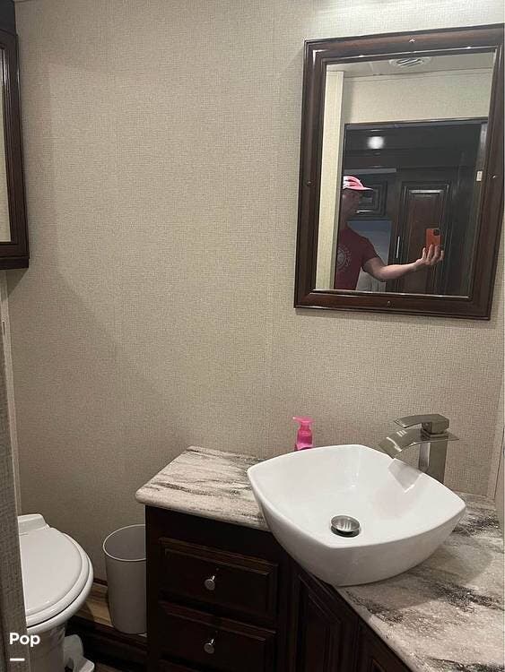 The bathroom is well-appointed, ensuring you can access all the necessities during your travels. The Georgetown has a total of one and a half bathrooms. Both are spacious and well-appointed.