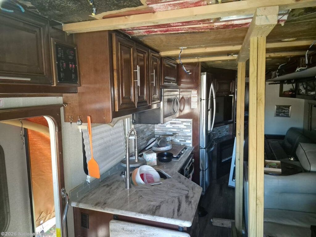 Step into a welcoming interior where comfort meets convenience. The expansive living area features plush seating, a versatile dining space, and panoramic windows that fill the coach with natural light - perfect for relaxing, entertaining, or enjoying family time. The well-equipped kitchen is ready for meal prep on the go, with ample counter space, generous storage, and quality appliances that make cooking easy and enjoyable.