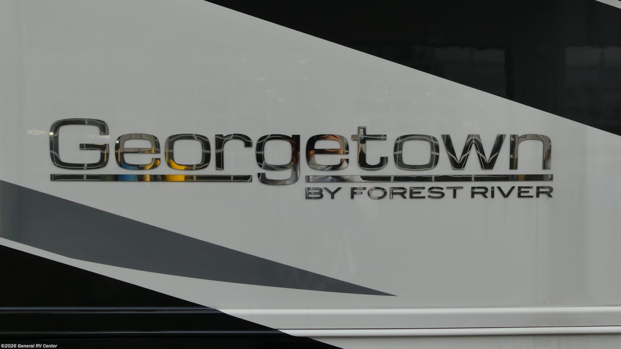 Forest River Georgetown XL class A motor home 378TS highlights: Triple Slide Outs Private Rear Bedroom Spacious Interior Sleeps Five People For your next camping trip whether near or far you will want this spacious triple slide out Georgetown XL 378TS motor home by Forest River. Once you reach your destination then come relax in the living area where you will find a sofa with footrests and across the room there is a TV and a fireplace. The private rear bedroom has a queen bed, a large wardrobe, and you can choose to add a washer and dryer. Get ready to set out to new adventures with a Georgetown XL class A motor home by Forest River. These models are built on a Ford F-53 chassis. You won't be lacking for storage with the Rotocast one-piece storage compartments plus all of the interior overhead cabinets. In the evening plan to sit and visit with your family and friends under the patio awning plus the LED light strip allows you to visit even after the sun has set. Inside there is a Pioneer dash entertainment system with AM/FM/DVD/Bluetooth/USB. You will also find 90 Sheen high gloss solid wood Amish cabinetry, plus a Stainless Package which includes a stainless steel residential 20 cu. ft. refrigerator, Furrion commercial grade stainless cooktop with sealed burners and removable cast iron grates. When you choose to camp and travel with a Georgetown XL you won't be disappointed!