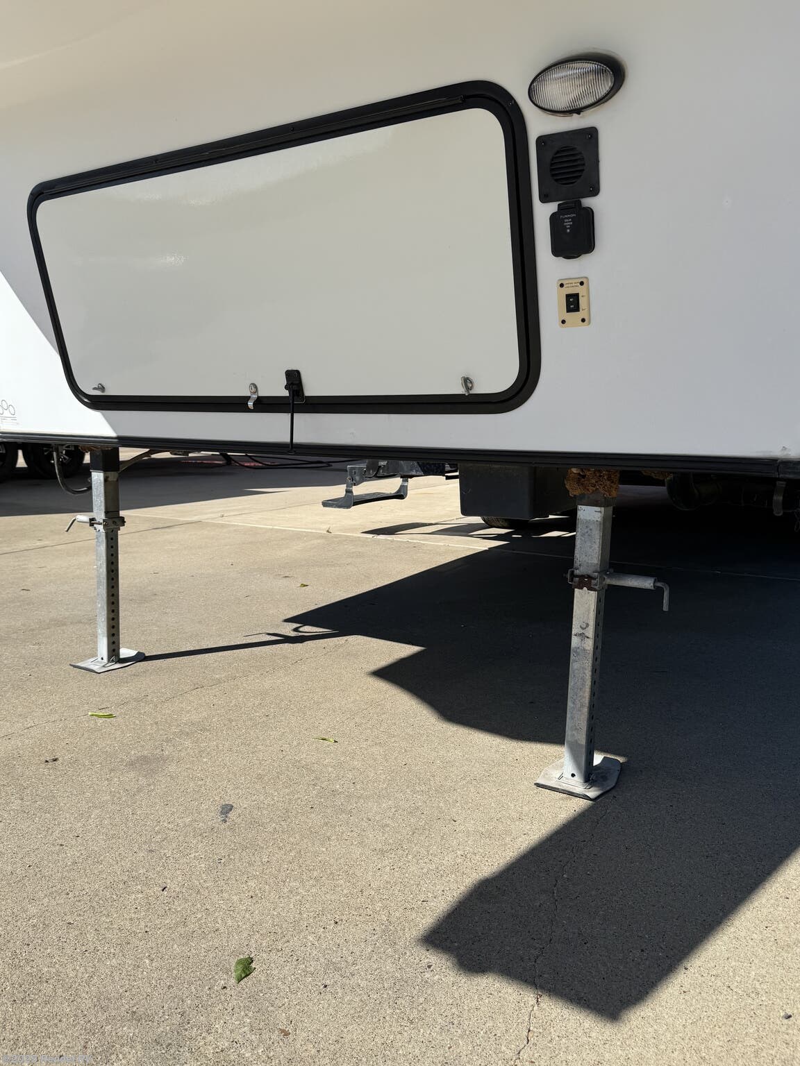 Awning, Exterior Speakers, External Shower, Ladder, Leveling Jacks, Power Roof Vent, Skylight, Slideout, Spare Tire Kit -