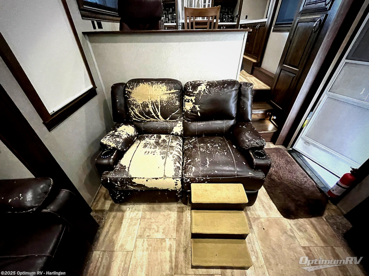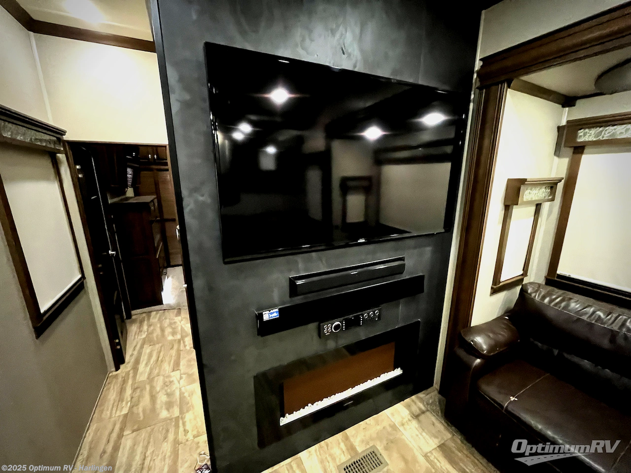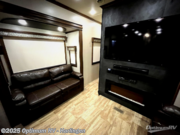 This RiverStone fifth wheel is the perfect model for entertaining which includes spacious rooms with many at-home features such as a king-size bed, a fireplace, dual entry doors, and even a 39" LED TV in the rear private bedroom! The front kitchen has plenty of counter space for meal prep as well as an island and a dishwasher to make your meal prep and clean up a breeze. In the living room you can come relax at the theater seats or one of the two hide-a-bed sofas while watching TV on the 60" Smart TV or maybe you prefer a nice quiet evening with a fire in the fireplace. In the rear bedroom there is a washer/dryer so now you can keep up with the laundry while you are away from home!