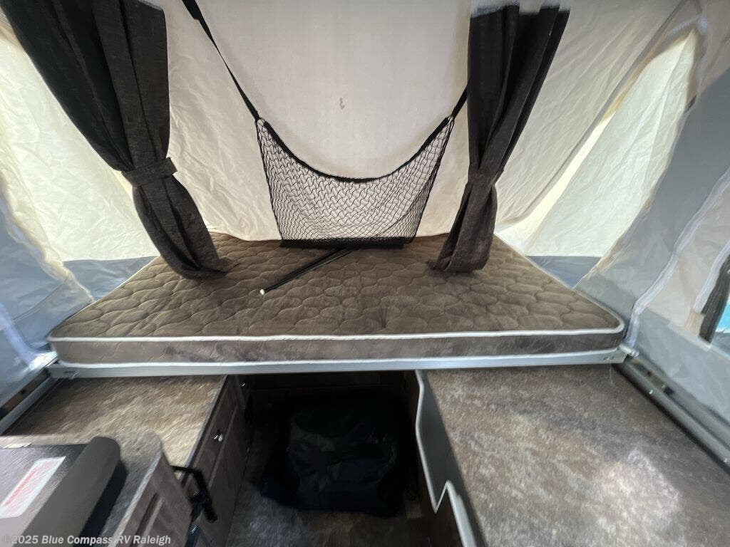 You will find plenty of space inside this 2280BHESP Rockwood Extreme Sports folding pop-up camper by Forest River. With a rear queen size tent bed, and a front king bed you will have enough sleeping space for your family. Plus there is an exterior front deck for storing your toys and outside gear!