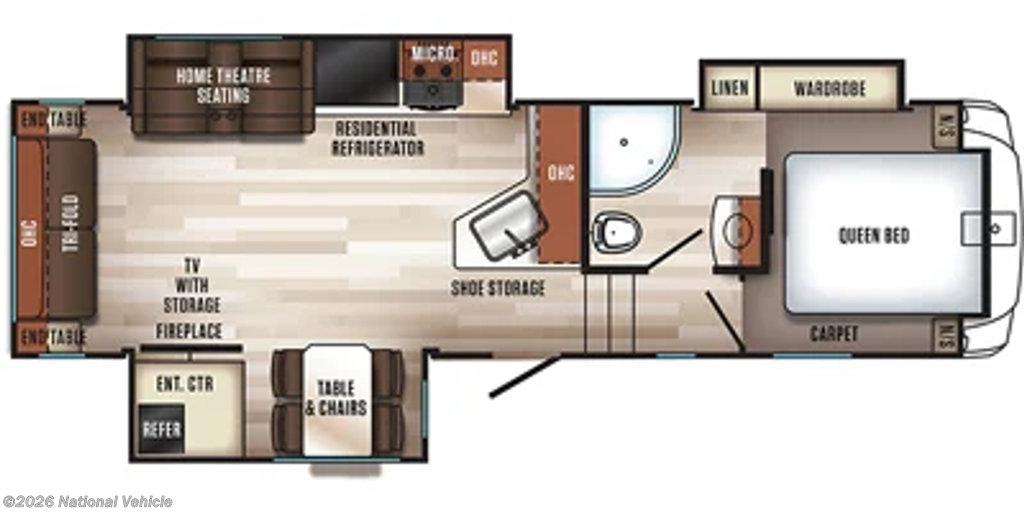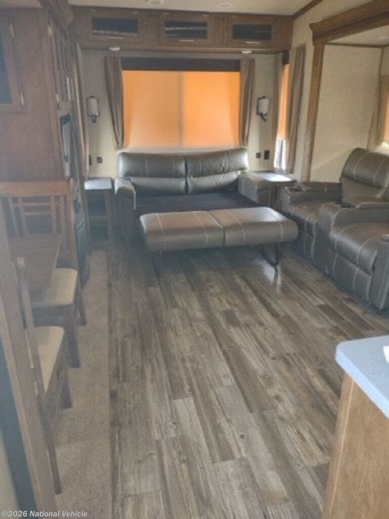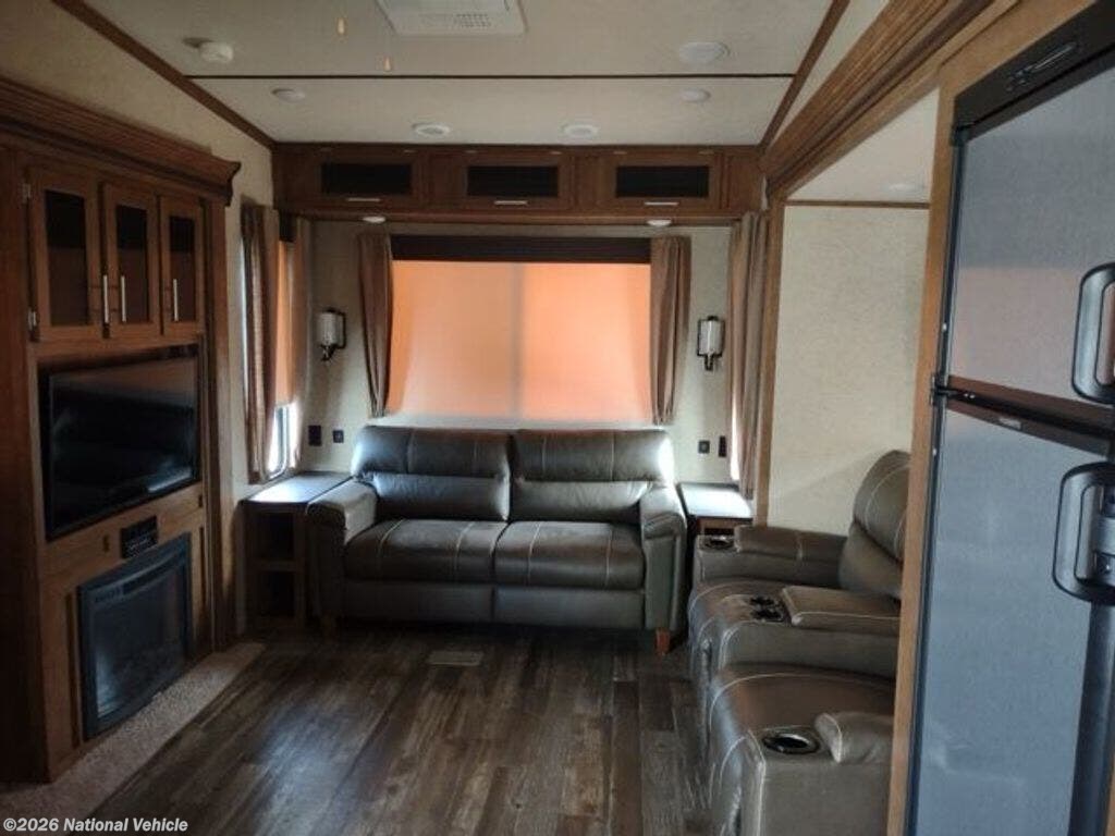 Step inside and you?ll immediately appreciate the spacious rear living area, featuring comfortable seating, dual recliners, and a sofa positioned perfectly for the entertainment center and cozy fireplace. Large windows flood the space with natural light, creating a bright and welcoming atmosphere whether you?re entertaining guests or unwinding after a day of travel.