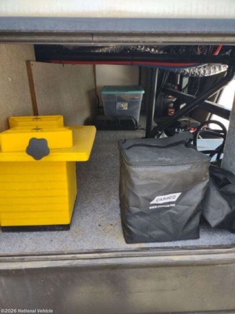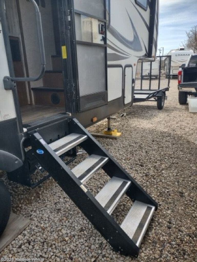 Additional features include power awning, pass-through storage, ducted A/C, a 35,000 BTU furnace, and power leveling jacks-making setup and comfort easy wherever you travel.