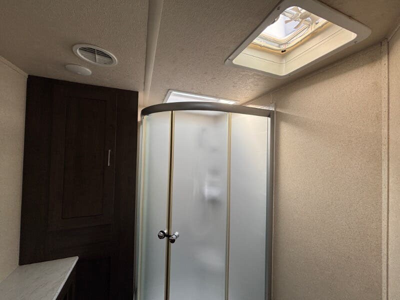 Medicine Cabinet, Non-Smoking Unit, Queen Bed, Roof Vents, Self Contained, Shower, Theater Seating