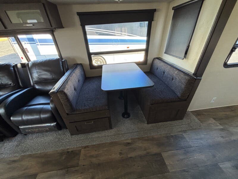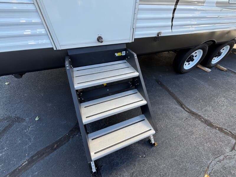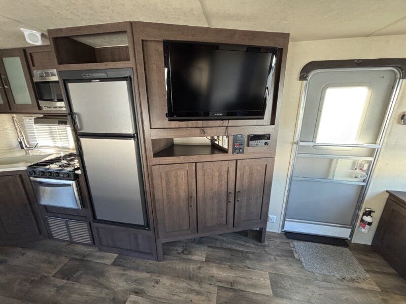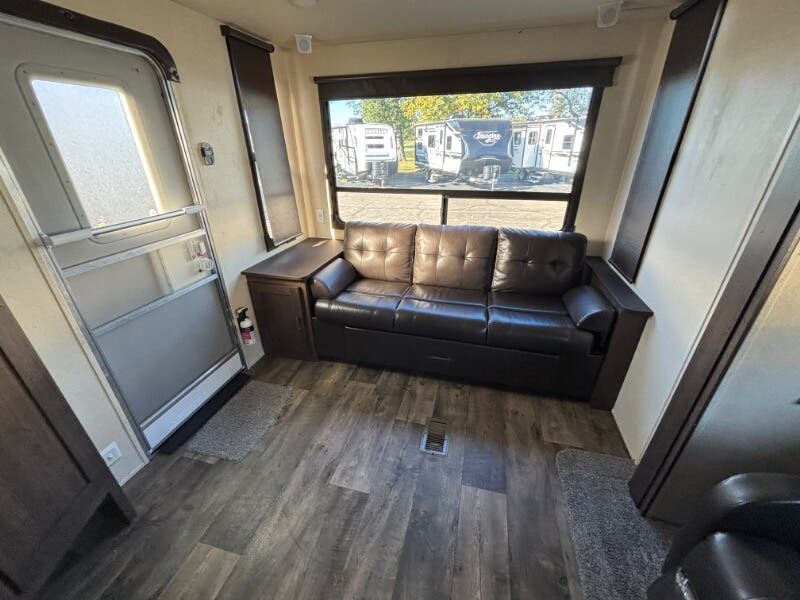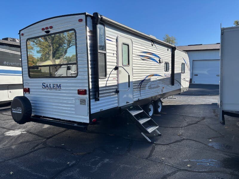 The 2018 Forest River Salem 28RLSS is a well-equipped used travel trailer designed to enhance your outdoor adventures with comfort and convenience. This RV features an array of amenities to create a home-like atmosphere while you're on the road. Exterior Features: - Vinyl patio awning, perfect for outdoor leisure - Radius entry step with a swing arm entry handle for easy access - Durable powder-coated frame with a cambered chassis - Diamond plate guard offers protection against road debris - Full walk-on roof with seamless SuperFlex roofing Living Spaces: - Bright LED lighting throughout for enhanced visibility - Comfortable and practical linoleum and carpet flooring - Sofa base storage drawer for additional storage needs - Warm and inviting living area with a digital thermostat for optimal comfort Dining and Kitchen: - Deep basin sink paired with a high-rise faucet for easy dishwashing - Convenient knife rack with hidden hinges on cabinets for a sleek look - Double door refrigerator, 3-burner range and oven, plus a microwave carousel - Spacious dinette storage drawer Entertainment and Electronics: - Systems center, ensuring all RV systems are easily monitored - Digital TV antenna booster with cable TV and satellite hookups - CD/DVD Bluetooth stereo with both indoor and outdoor speakers Sleeping Comforts: - Residential mattress with underbed storage struts - Bedside 110v outlets and a storage shelf for personal devices and belongings - Wardrobe mirror to keep you looking your best Bathroom: - Medicine cabinet for organizing toiletries - Convenient foot flush toilet - 12v power vent to maintain airflow and reduce moisture Mechanical and Additional Features: - 13.5k ducted AC quick cool system and a 25k forced air furnace for year-round comfort - Quick recovery hot water system ensures a steady supply of hot water - Hitch light for easier nighttime connections Storage and Pass Thrus: - Basement pass-thru storage for easy access to essentials - Heated fresh water tank adds convenience for all-season use In summary, the 2018 Forest River Salem 28RLSS travel trailer is equipped with a plethora of features designed to ensure comfort, convenience, and reliability on the road, making it an excellent choice for your travel adventures. ???