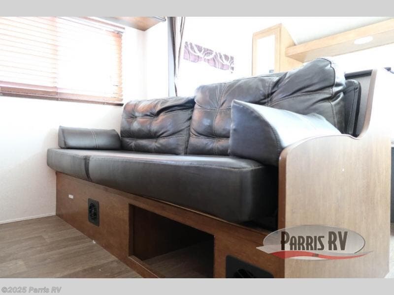 Take this unit on your next weekend camping trip and sleep up to seven individuals. There is a queen bed, the sofa, and the dinette both fold down into a sleeping arrangement and then the double bed bunk beds. Enjoy playing games at the booth dinette or curling up with a book on the sofa. Play a game of cornhole, then grab a snack and rest under the awning. It is perfect for keeping the sun off, but you are still able to enjoy the fresh air.
