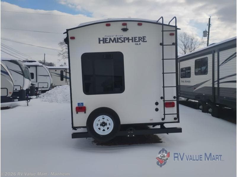 When you want time away from home, but yet want the comforts of home, then choose a Salem Hemisphere GLX travel trailer by Forest River. These models have plenty of residential features such as a stainless steel Dometic double door refrigerator, an under mount sink, stain resistant carpet in the living room and Beau plank wood linoleum in the kitchen. Along the exterior you will find an aerodynamic front cap with LED light strip, gel coated fiberglass exterior, and marine grade exterior speakers with a blue LED light. The One Touch electric awning provides plenty of shade and allows you to instantly have a nice outdoor living space and more!