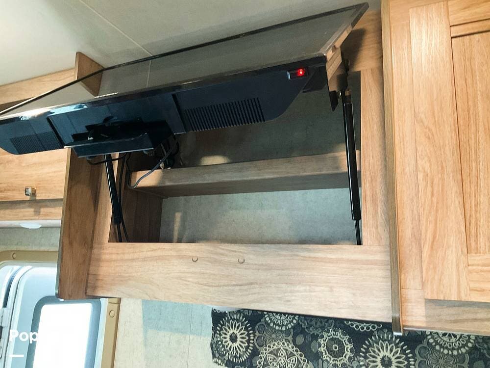 At the rear of the RV, the private bedroom features a queen bed, dual wardrobes, a linen closet, and a mounted TV. Altogether, the 3010DS offers a smart layout with comfortable sleeping space, practical storage, and the features many buyers are looking for in a Class C motorhome.