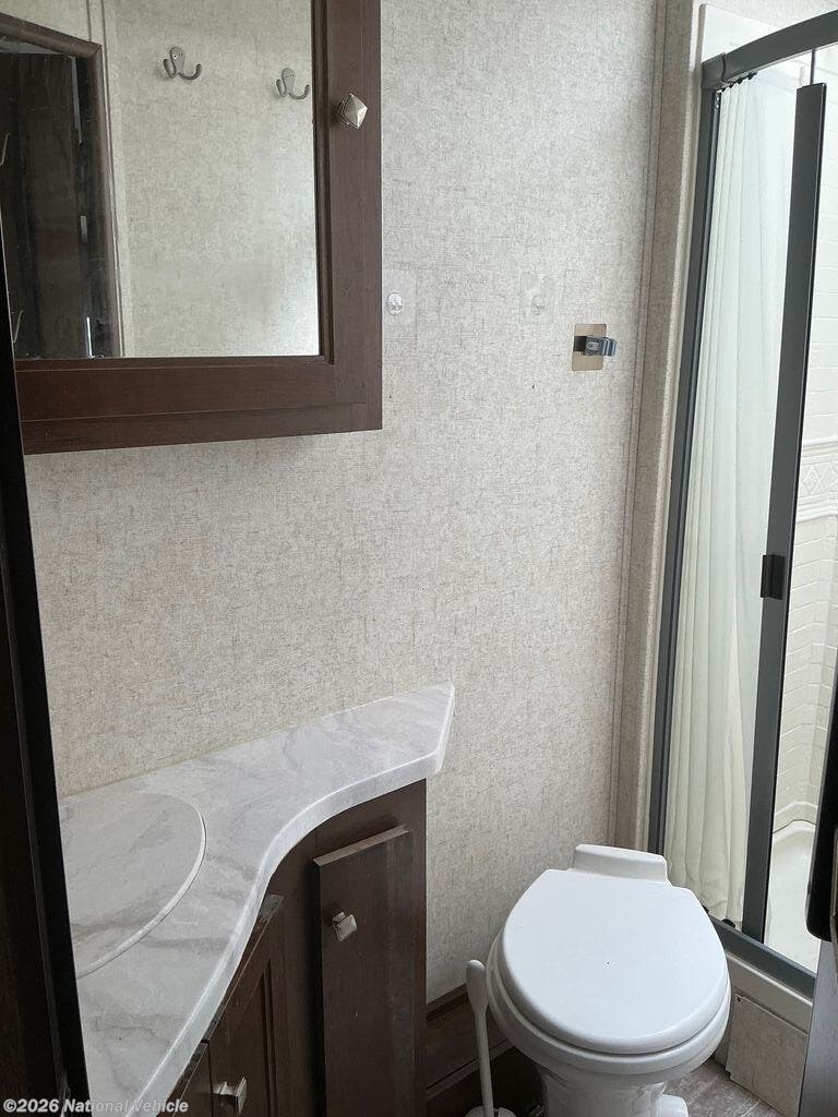 Enjoy added convenience with features like a full bathroom, onboard generator, power awning, backup camera, and ample exterior storage. With a towing capacity around 4,200 lbs, you can even bring along your favorite toys or a small vehicle.