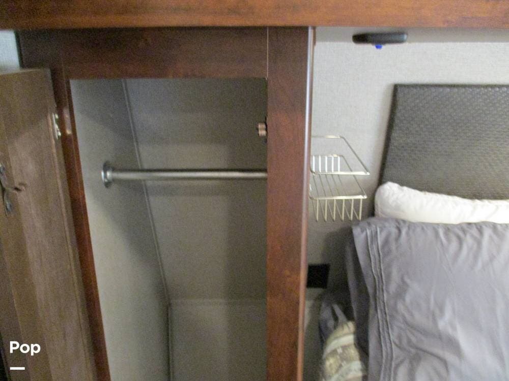 At the front of the RV is the master bedroom with a walk-around KING BED and wardrobe storage on each side. There is also a large wardrobe closet on its own slide to maximize bedroom space.