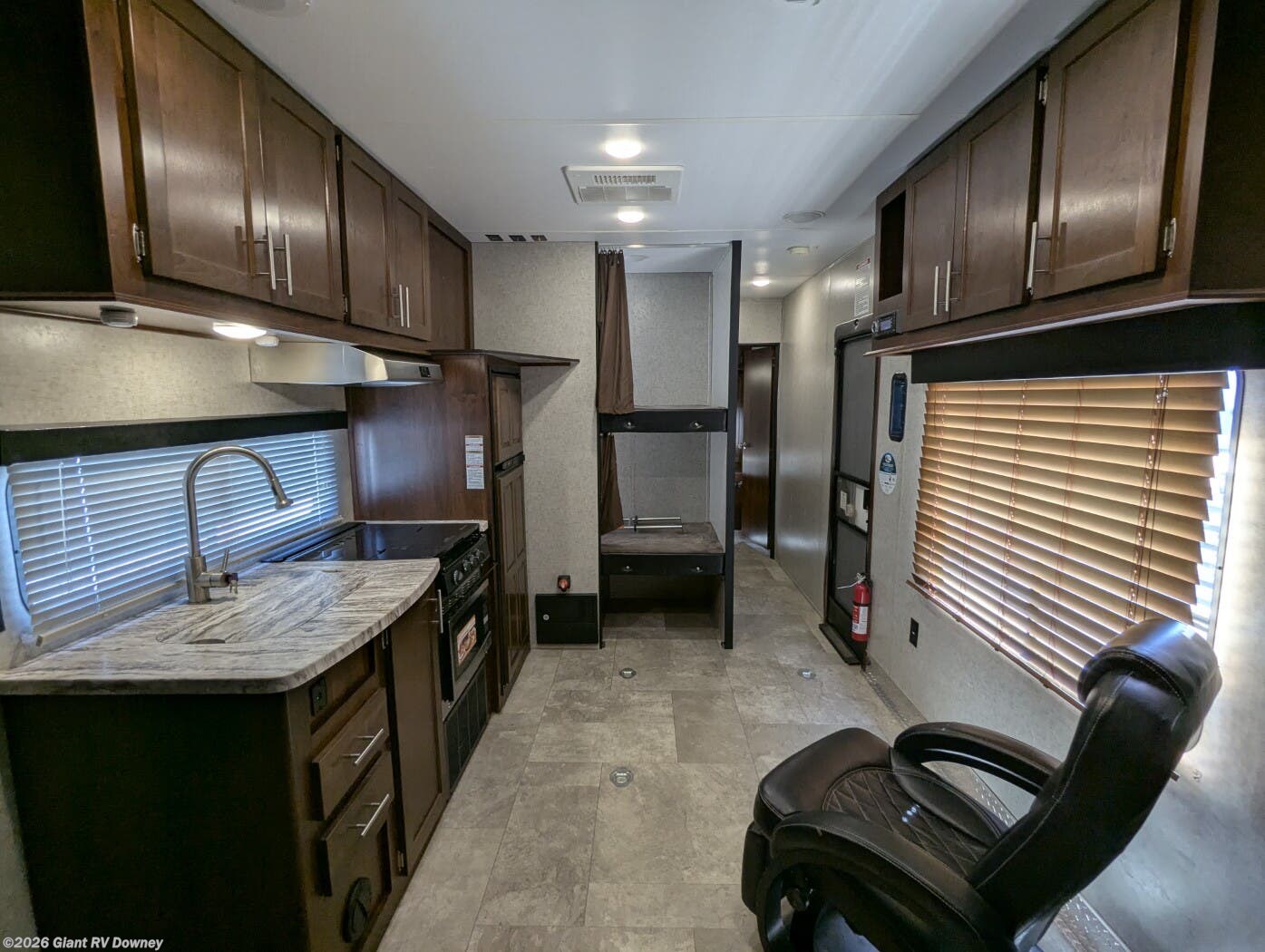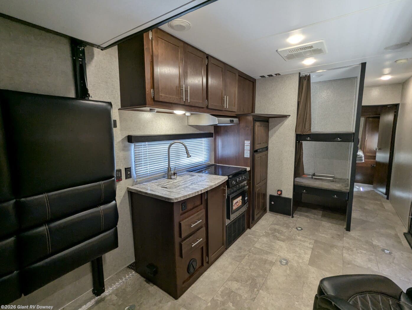 Conquer the open road with the 2018 Forest River Vengeance Rogue 28V, a rugged toy hauler travel trailer built for adventure enthusiasts and families. Available at Giant RV, this used RV features a spacious 13'6" garage and a durable steel frame chassis, combining tough construction with cozy amenities for unforgettable RV camping experiences.