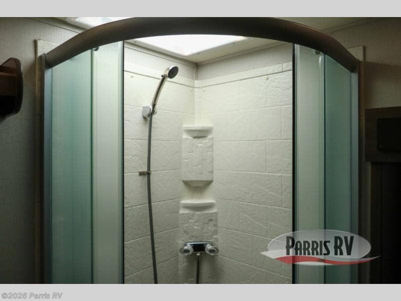 There are plenty of overhead cabinets throughout the fifth wheel. Outside you can enjoy extra storage space thanks to the pass through storage area. The outside shower allows you to easily clean up before coming inside, and more!