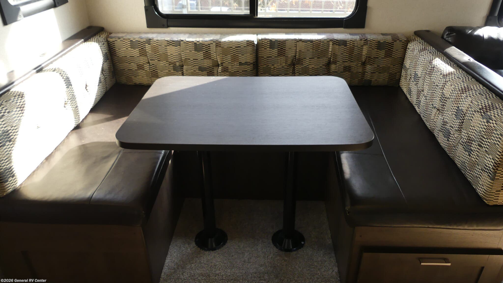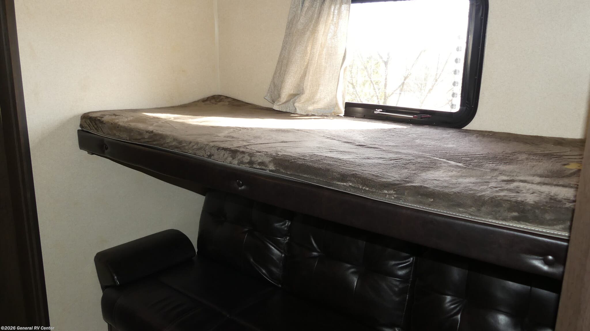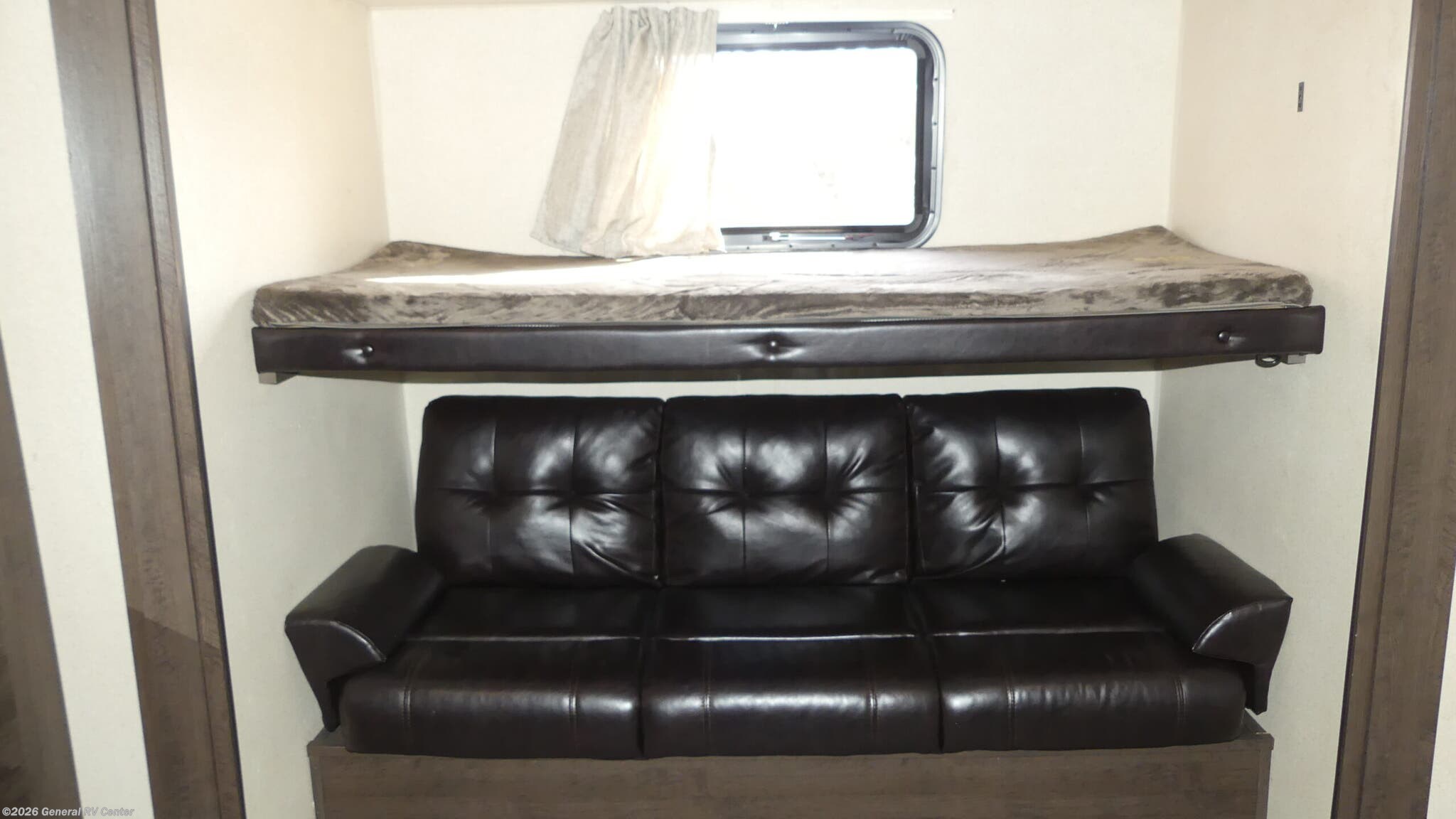 Experience the ultimate in family-friendly camping with the 2018 Forest River Wildwood 31KQBTS. This spacious RV is designed for adventure and comfort, boasting a remarkable capacity to sleep up to 11 guests. Its clever layout features a private front bedroom with a cozy queen bed, ensuring restful nights. At the rear, a dedicated bunkhouse with four bunks offers a perfect haven for the kids or extra guests, making it an ideal choice for family getaways. The heart of this RV is its well-appointed center kitchen and living area, where you can gather for meals and relaxation. The kitchen comes equipped with a three-burner cooktop and a mid-size refrigerator, perfect for preparing and storing your favorite meals. The U-shaped dinette and sofa provide ample seating for dining or lounging. Step outside and enjoy the convenience of the 18-foot powered retractable awning, which creates a perfect outdoor living space for enjoying the great outdoors. With three slides, this RV offers plenty of room to move and entertain, making it a true home away from home. For more details and to explore this fantastic RV in person, visit your nearest General RV dealership.