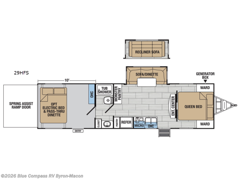The XLR Hyper Lite 29HFS toy hauler travel trailer by Forest River is perfect for your next toy hauling adventure! You will have a separate 10' garage area for storing and keeping your toys. Once you unload you have an optional electric bed and pass through dinette, so the kiddos have a place to sleep and have their own space. Walk through the bathroom and you will have a great space for preparing your meals, enjoying them with family, and cleaning up afterward. There is a monster pantry for storing your non-perishables so you can take as many as you would like with you. There is a smaller pantry opposite the bigger giving you an added place for storing things.
