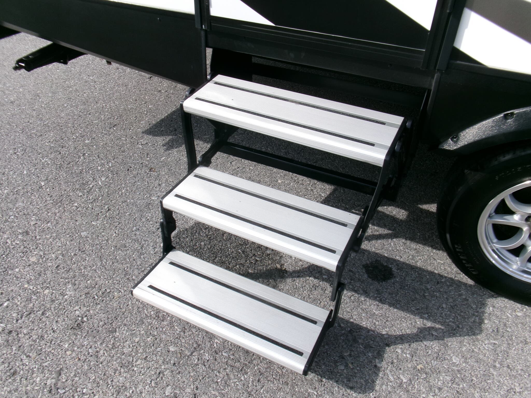 Awning, Exterior Speakers, Ladder, Leveling Jacks, Power Roof Vent, Skylight, Slideout, Spare Tire Kit -