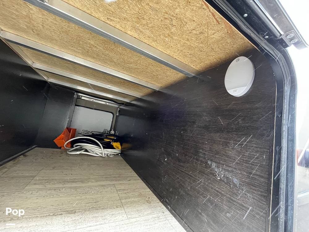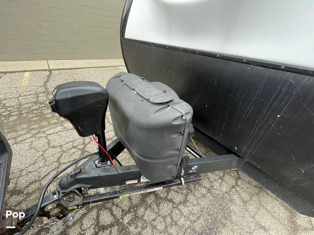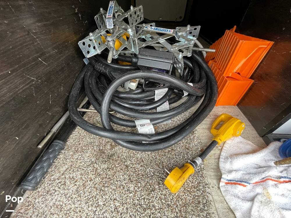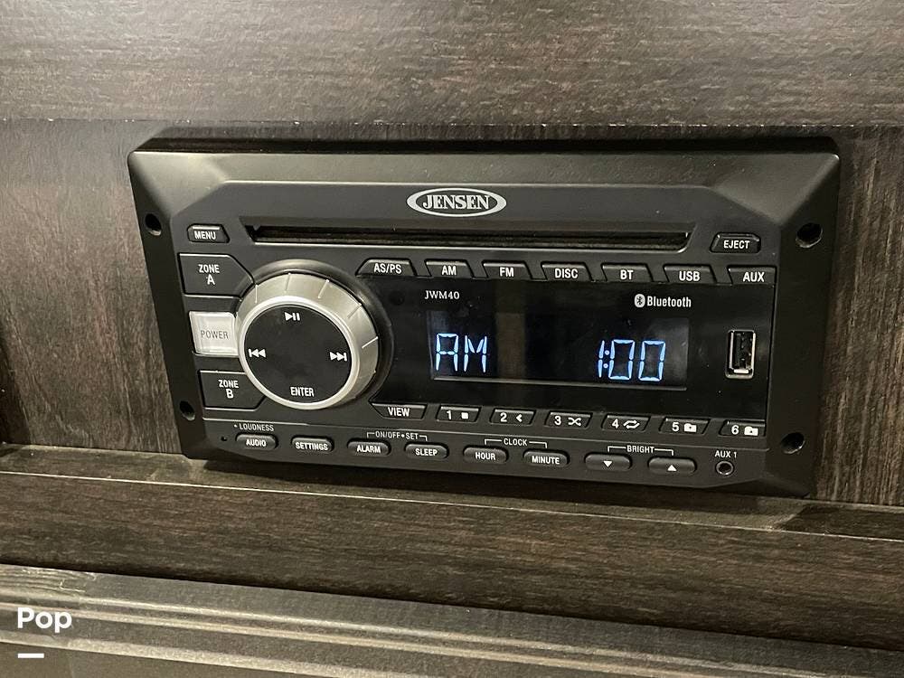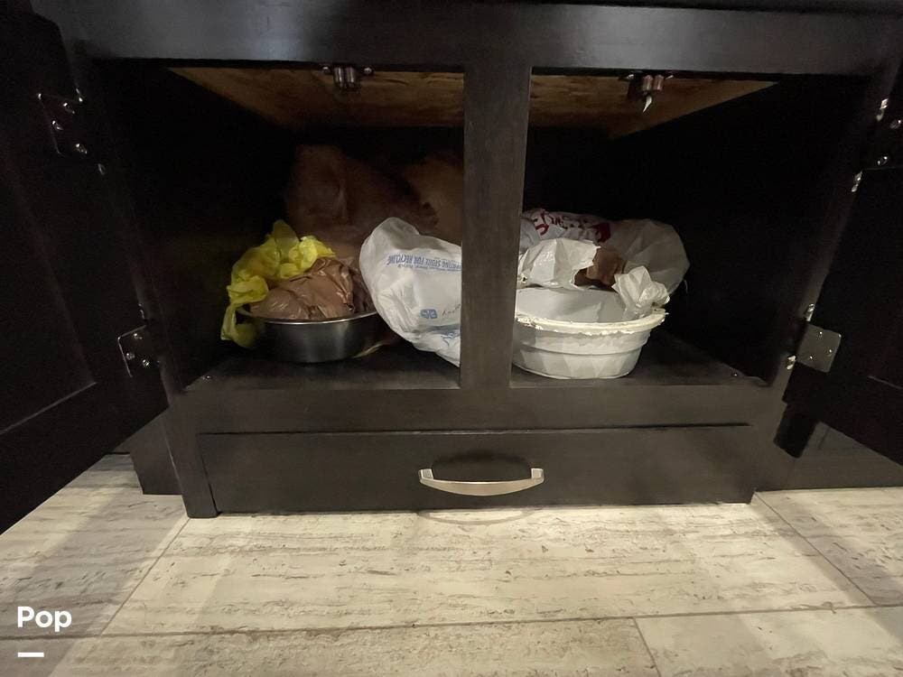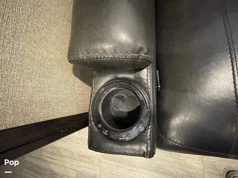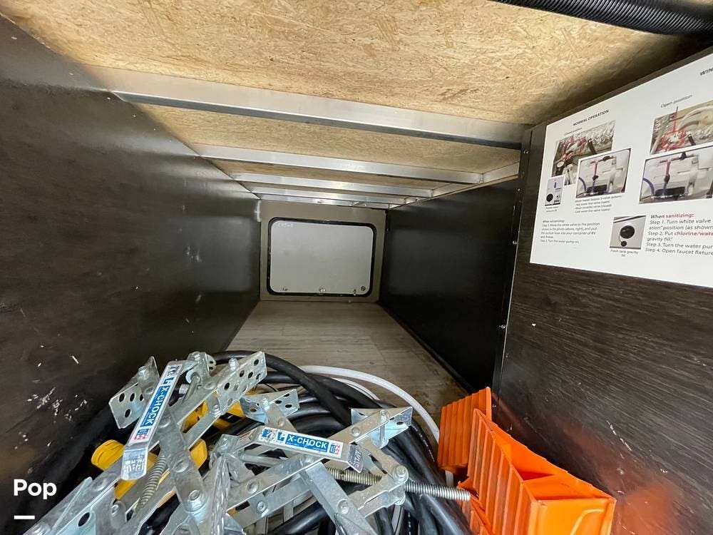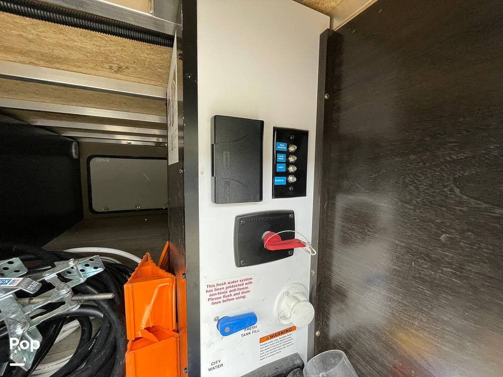 The exterior standards include a power awning with LED light stripping, a power tongue jack, black tank flush, and exterior speakers.