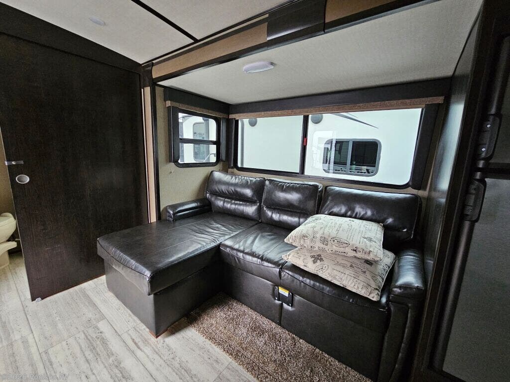 The 2018 Grand Design Imagine 2150RB is a used travel trailer that offers a perfect balance of comfort and convenience ideal for family adventures. With a length of 26.9 feet, it is designed to provide ample living space while remaining manageable for a variety of towing vehicles. This model accommodates up to four people comfortably, making it a great choice for couples or small families seeking memorable camping experiences. The interior features a well-designed living area enhanced by a slide out that expands the space, allowing for easy movement and socializing. Its layout optimizes sleeping arrangements and flexibility, ensuring restful nights and versatile usage depending on your travel needs. Practical details like the solid dry weight of 5195 pounds and a hitch weight of 427 pounds contribute to stable towing and setup. This travel trailer also includes essential amenities to enhance your comfort, and leveling jacks provide convenient stability when parked. Whether planning weekend getaways or extended road trips, this unit supports your desire for reliable, enjoyable RV living. As a family-owned, award-winning local RV dealer with multiple locations in Sumner, Everett, Kent, and Mt. Vernon Washington, Poulsbo RV here to help you find the perfect RV. Stock#: CC5349, VIN: 573TE2720J5500772.