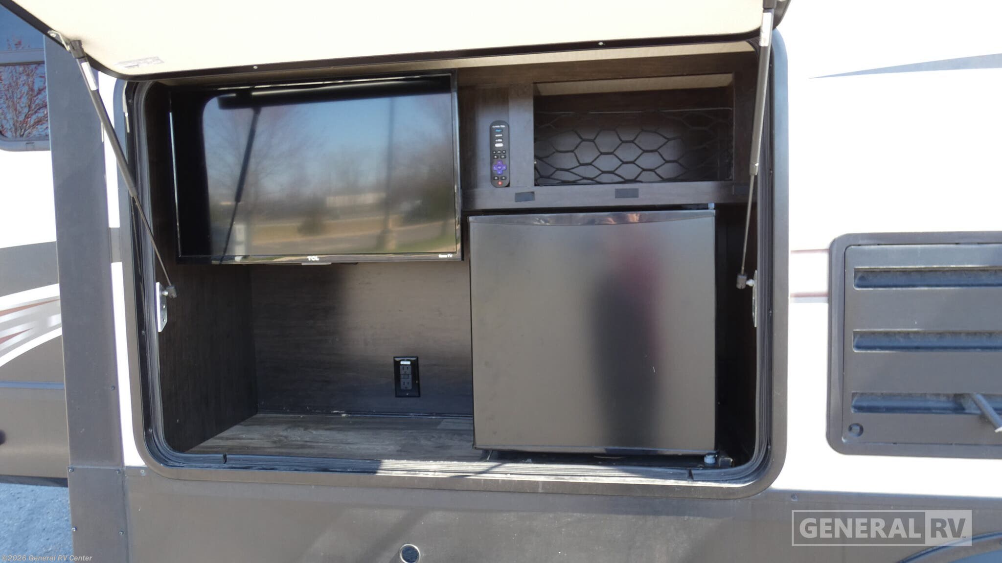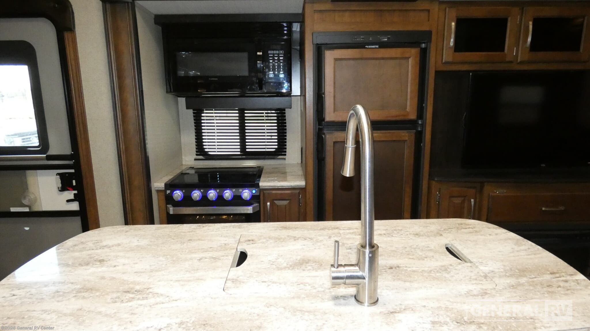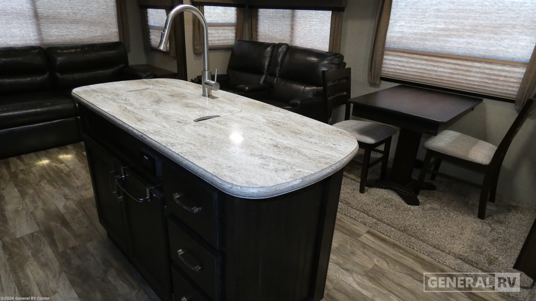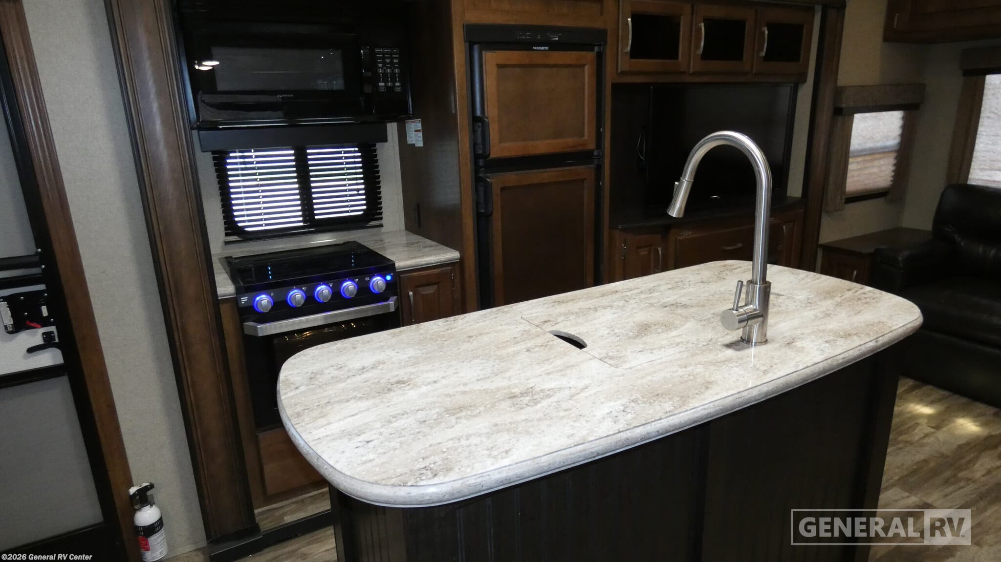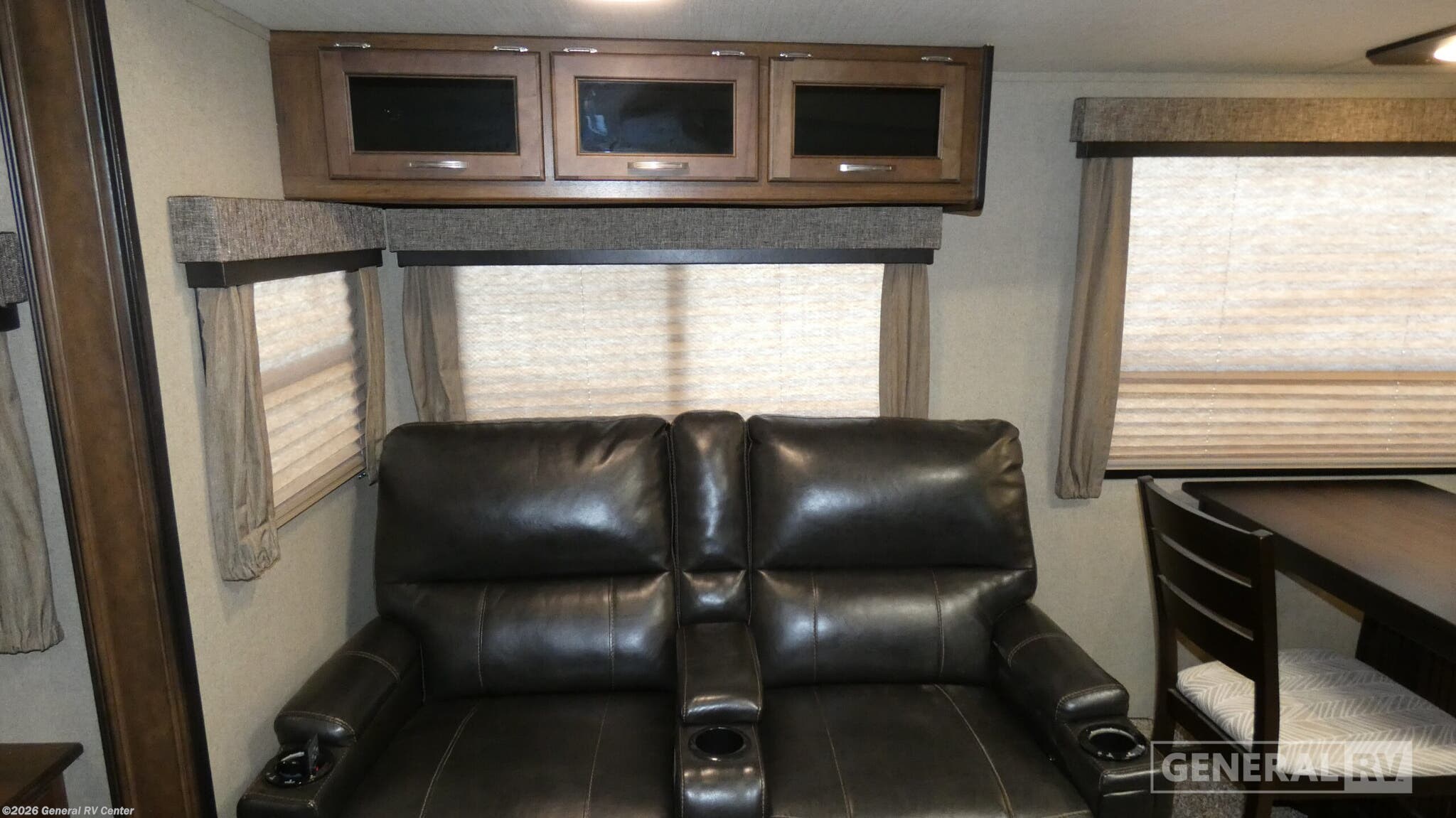 This Refection 29RS fifth wheel is perfect for a couple that enjoys traveling the countryside with their own accommodations including several luxury items just like at home. If you can imagine cooking in a gourmet kitchen with a center island and farm sink, plus watching a 40" TV with fireplace below then this model is for you. Your spouse may even be watching the TV from the theatre seats or napping on the tri-fold sofa. When it's time for bed, you can get cleaned up in the radius shower, and sleep on a queen bed. You will find plenty of storage throughout for your clothes, dry goods, games, and blankets, plus there is an exterior unobstructed pass-through compartment that allows you to store larger items. It's time to get moving and start living the dream! The Reflection by Grand Design offers luxury along with providing easy towing with the aerodynamic front cap with Max Turn radius to your favorite destinations. The Universal All-In-One docking station, LP Quick Connect, and One-Touch electric awning with LED light make setting up and packing up easy for those weekenders or full-timers that like to move around. Inside you will find the bedroom is complete with a pillowtop queen mattress, king size wardrobe, oversized underbed storage, and much more! The Arctic 4-Seasons Protection package allows you to camp anywhere and anytime of the year. Come choose your favorite model today!