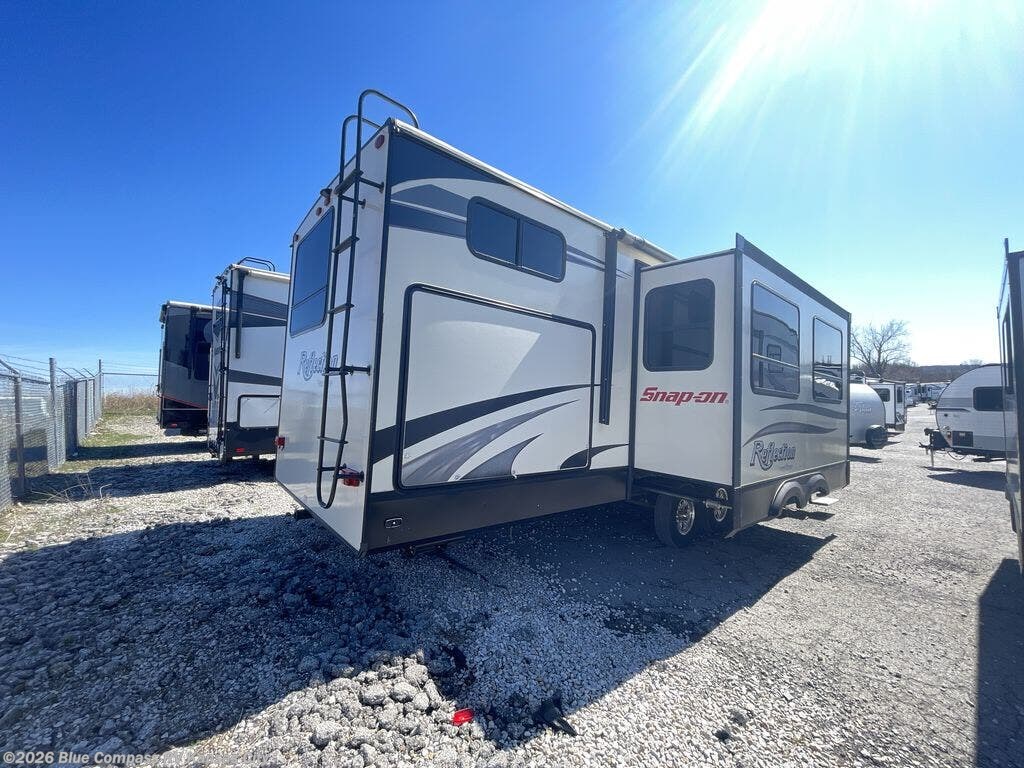 The Reflection by Grand Design offers luxury along with providing easy towing with the aerodynamic front cap with Max Turn radius to your favorite destinations. The Universal All-In-One docking station, LP Quick Connect, and One-Touch electric awning with LED light make setting up and packing up easy for those weekenders or full-timers that like to move around. Inside you will find the bedroom is complete with a pillowtop queen mattress, king size wardrobe, oversized underbed storage, and much more! The Arctic 4-Seasons Protection package allows you to camp anywhere and anytime of the year. Come choose your favorite model today!