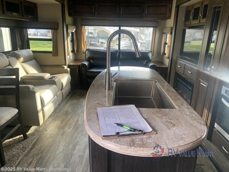 This Reflection 337RLS fifth wheel allows you to enjoy the comforts of home while away exploring the world with your favorite person. You can even invite over a few overnight guests. Just imagine sitting in the rear living area on the furniture provided while visiting with the cook preparing meals at the kitchen island or washing dishes in the farm sink. You might even glance over at the 40" TV and fireplace ever once in a while. You will find storage everywhere you look inside including outside in the unobstructed pass-through compartment. This model has many more standard features to enjoy and options to choose from to make this your perfect full-time or weekend retreat on wheels.
