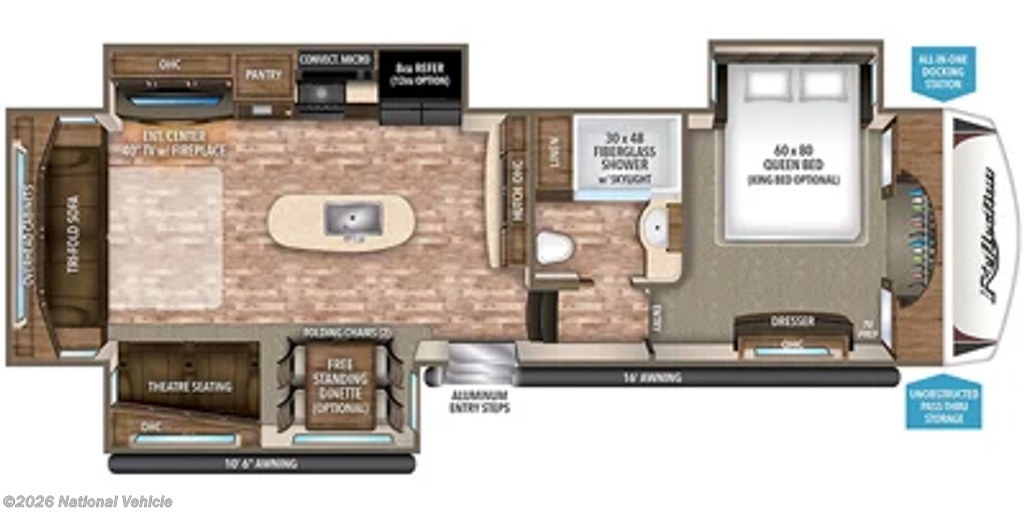 RV king bed with under-bed storage