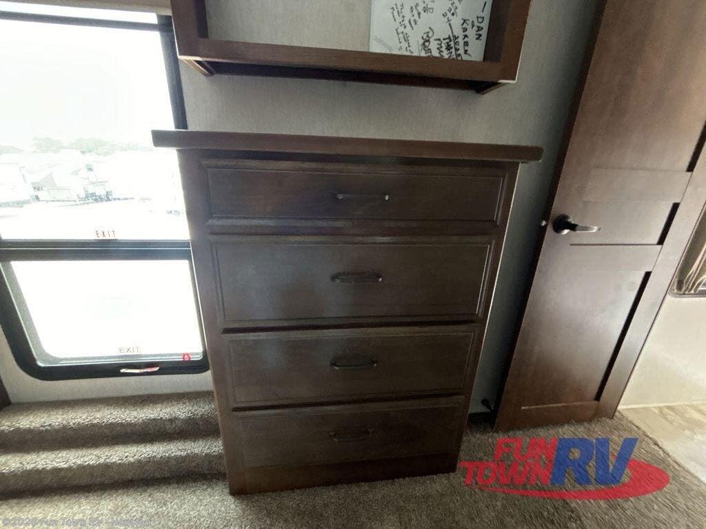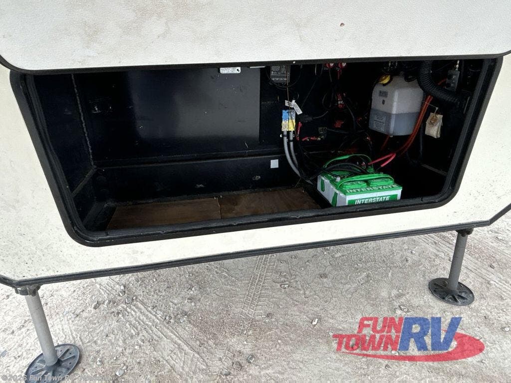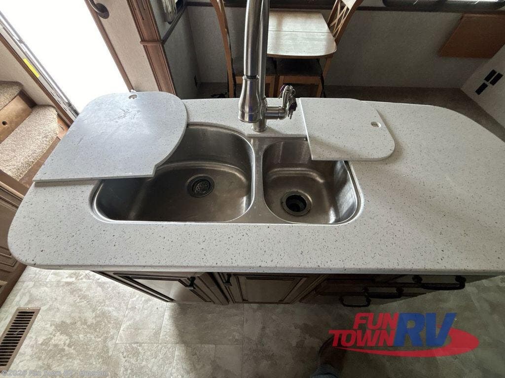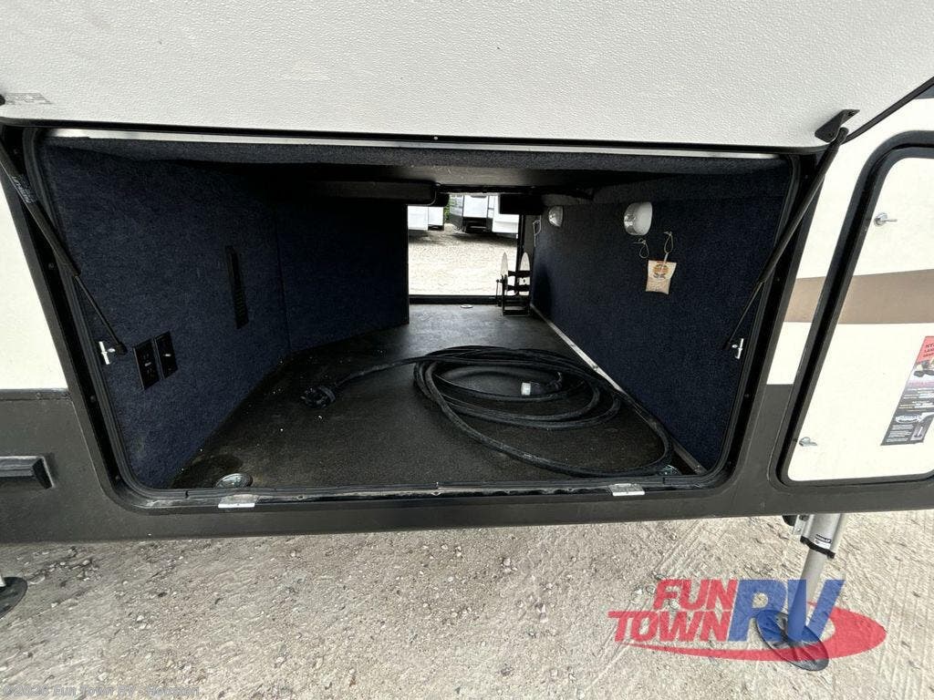 Come see how easy camping can be when you choose to camp in this Bighorn 3010RE fifth wheel. Along the rear wall there is an entertainment center where you can enjoy watching TV. You can either choose to sit at the sofa within the roadside slide out or at the two swivel chairs within the curbside slide out. Meal prep just got a little bit easier since there is more counter space at the island. The private front bedroom is both spacious and functional with a king bed plus there is a closet that has been prepped for a washer and dryer, and more!