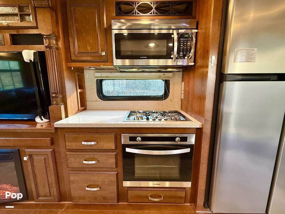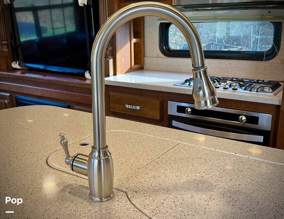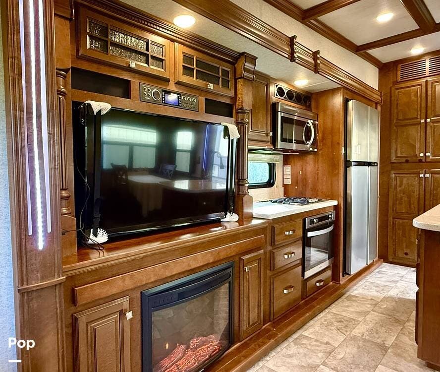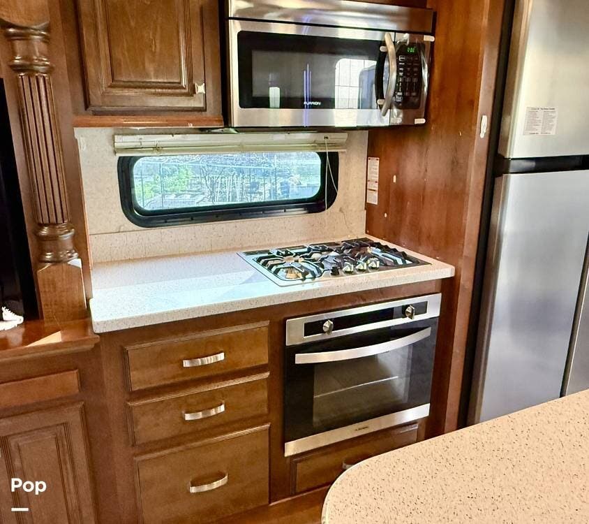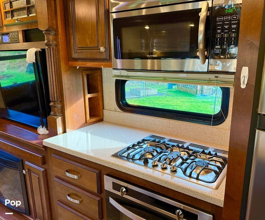 Throughout the coach, Heartland's renowned hand-crafted cabinetry stands out with glazed hardwood finishes, Amish-crafted natural hardwood doors, real wood drawer construction, and ball-bearing drawer guides, all screwed together rather than stapled for long-term durability. The all-in-one master control panel makes managing systems simple, from tank monitoring to slide and lighting controls.