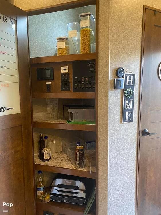 Externally, this well-kept 5th Wheel features power leveling, three slides, a power awning, exterior speakers, a roof access ladder, and much more!