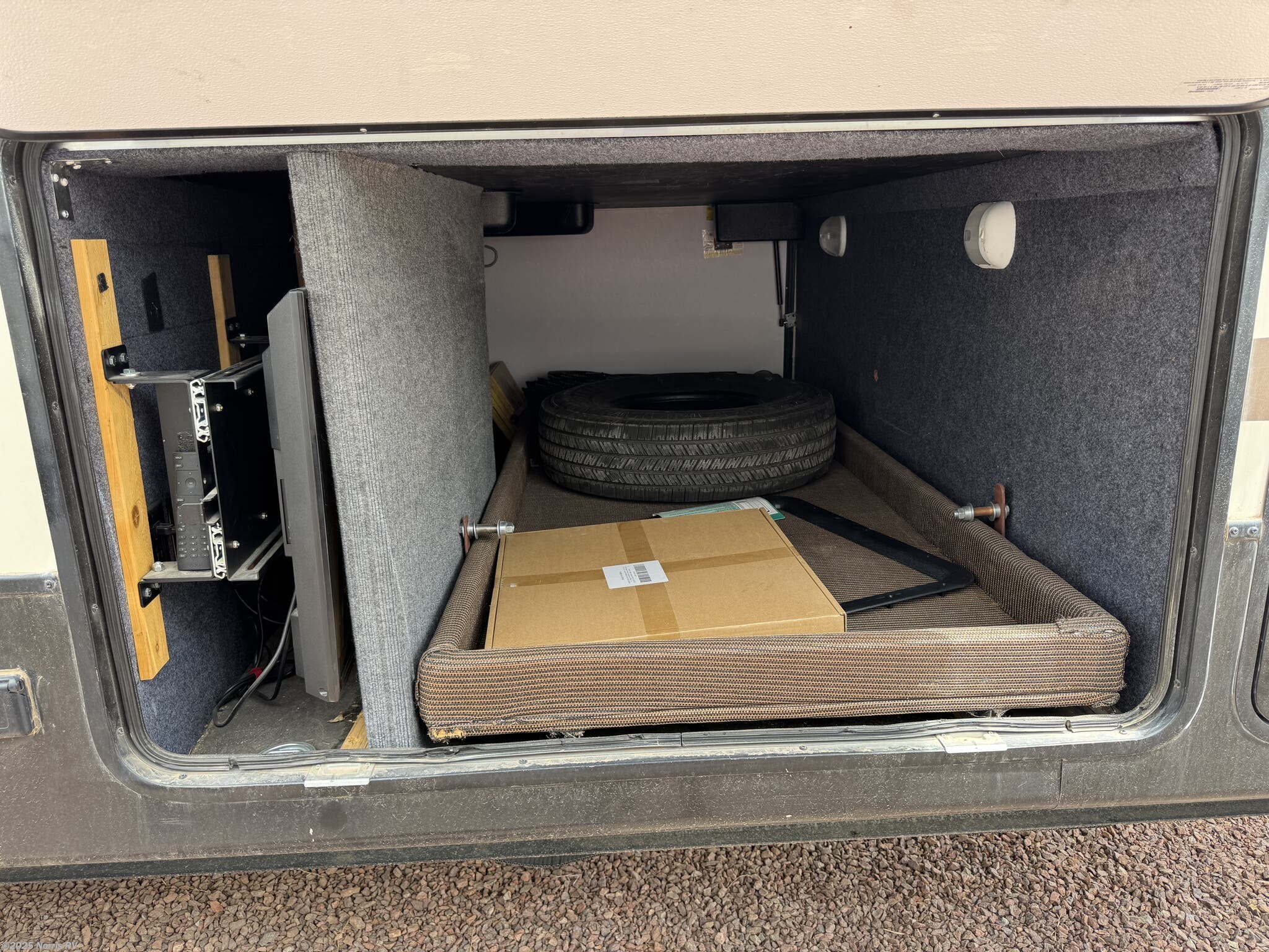 Automatic Leveling Jacks, Awning, Exterior Speakers, Ladder, Pass Thru Storage, Power Awning, Skylight, Slideout, Spare Tire Kit -