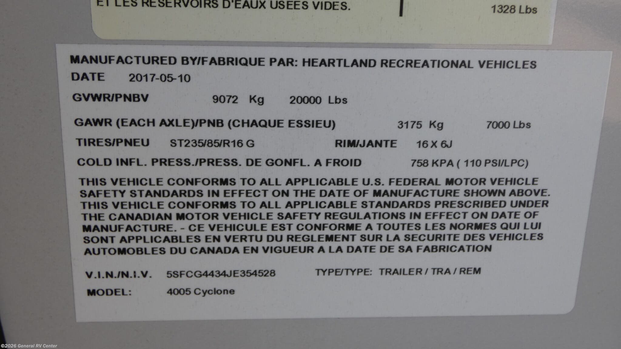 Request More Info on this 2018 Heartland Cyclone 4005 Offered for sale by General RV Center
