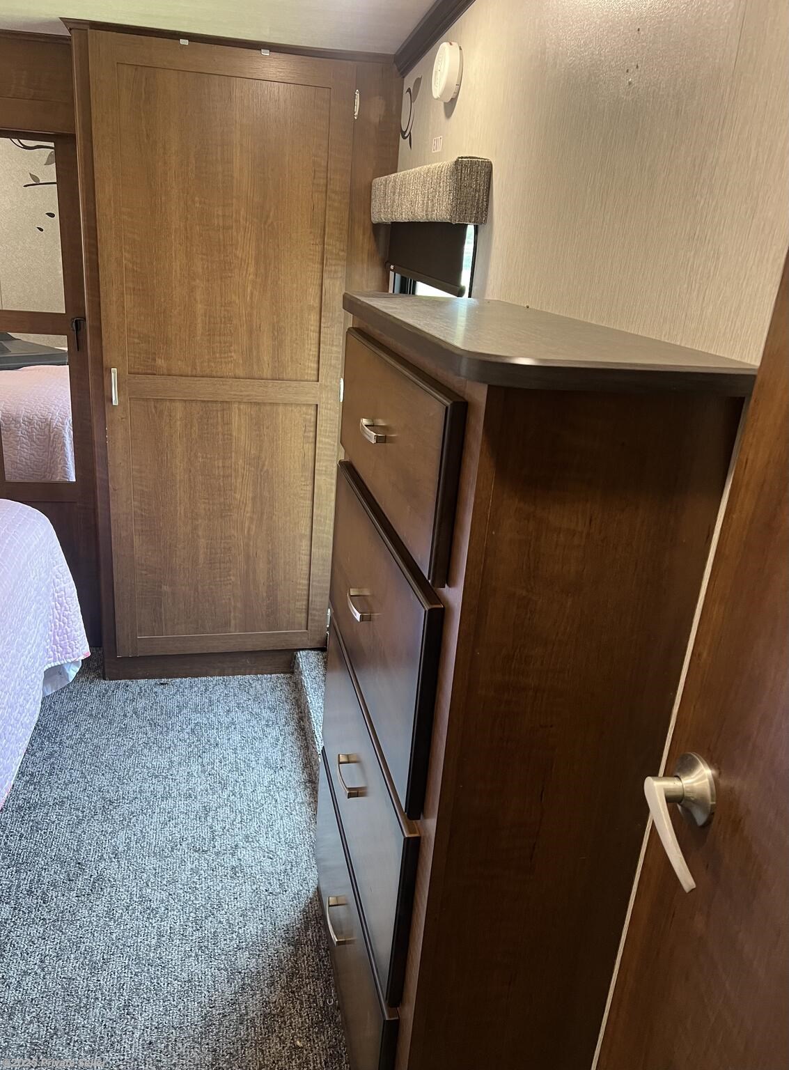 Well cared for, but showing typical wear on furniture. Loaded with options including automatic self leveling, washer/dryer, 2 air conditioners, full size French door refrigerator,fireplace, solid steps...... All systems and appliances work as designed.