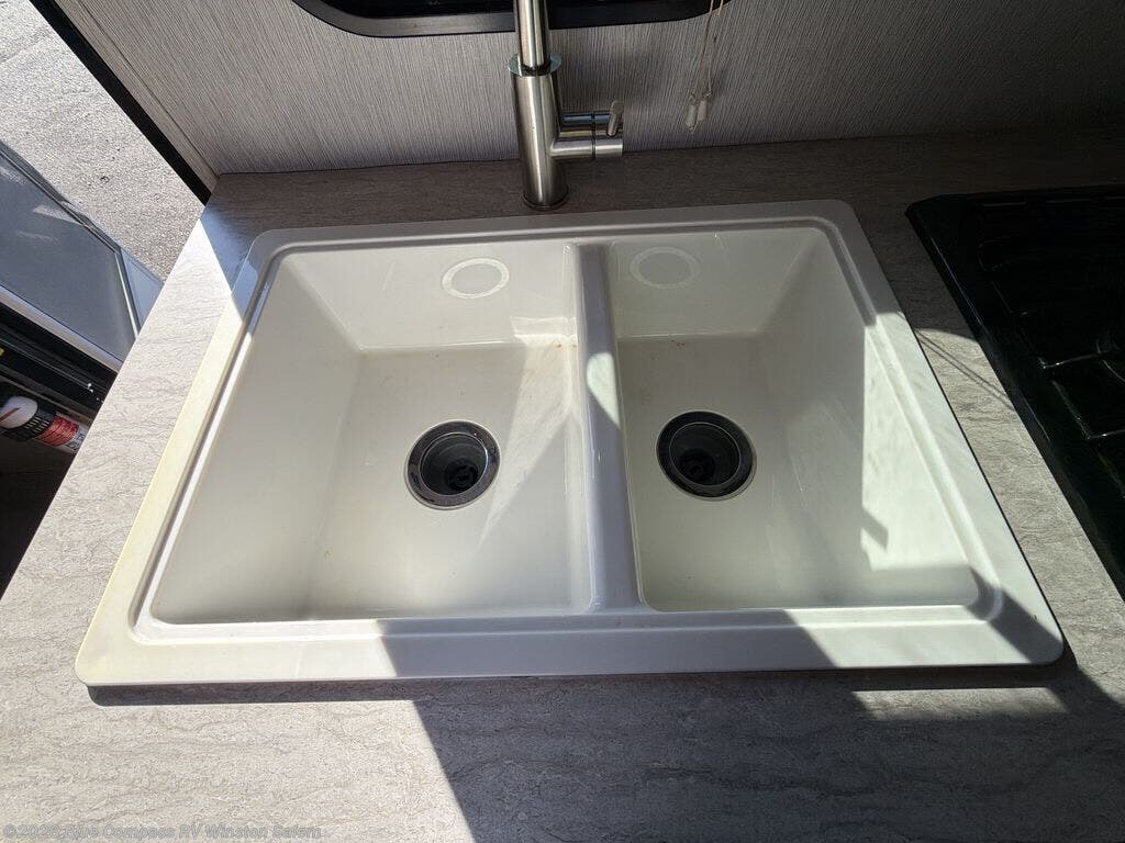 This Mallard Ultra Lite travel trailer is a dream come true for outdoor adventurers. With its set of bunk beds and queen-size bed, you have plenty of comfortable sleeping options to look forward to as you explore during the day, and as you work up an appetite while climbing mountains and hiking trails, you will certainly appreciate the amount of features that have been included in this trailer's kitchen, like the 3-burner range top and 6 cubic foot double-door refrigerator. If you still want more of the great outdoors after returning back to your trailer at night, you can spend your time outside underneath the electric awning with LED lights as you gather around the campfire and tell ghost stories.