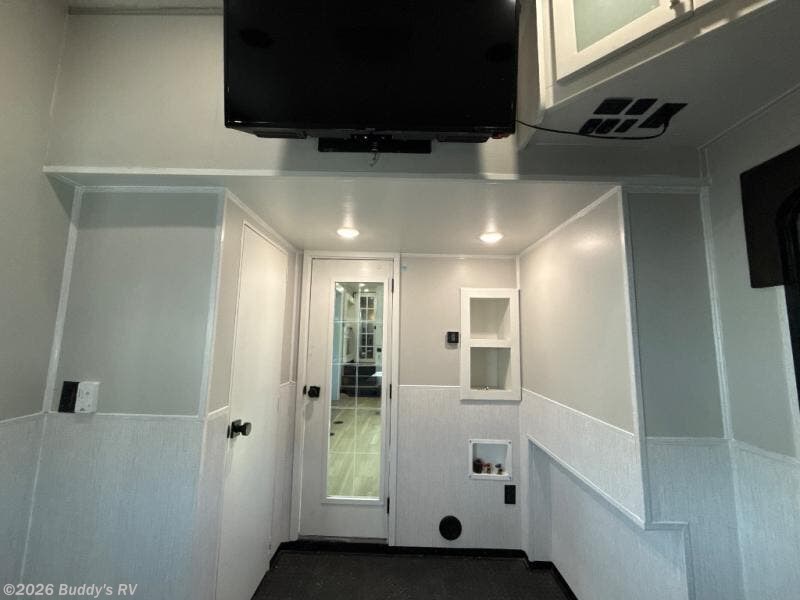 When you are ready for your next vacation to include time outdoors riding the trails and then coming back to the comfort of your home away from home, you will want this double slide out Road Warrior 427 toy hauler! The 12.5' garage has enough room for a few dirt bikes or even an ATV. With the half bathroom in the garage you can easily clean up before heading inside. After dinner come enjoy sitting outside at the patio while watching a little TV at the optional exterior 40" TV. Your kids can have their own space up in the loft, and mom and dad can enjoy the spacious master bedroom with a king bed!