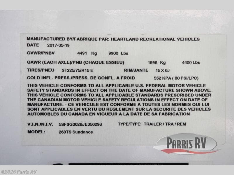 Request More Info on this 2018 Heartland Sundance 269TS Offered for sale by Parris RV