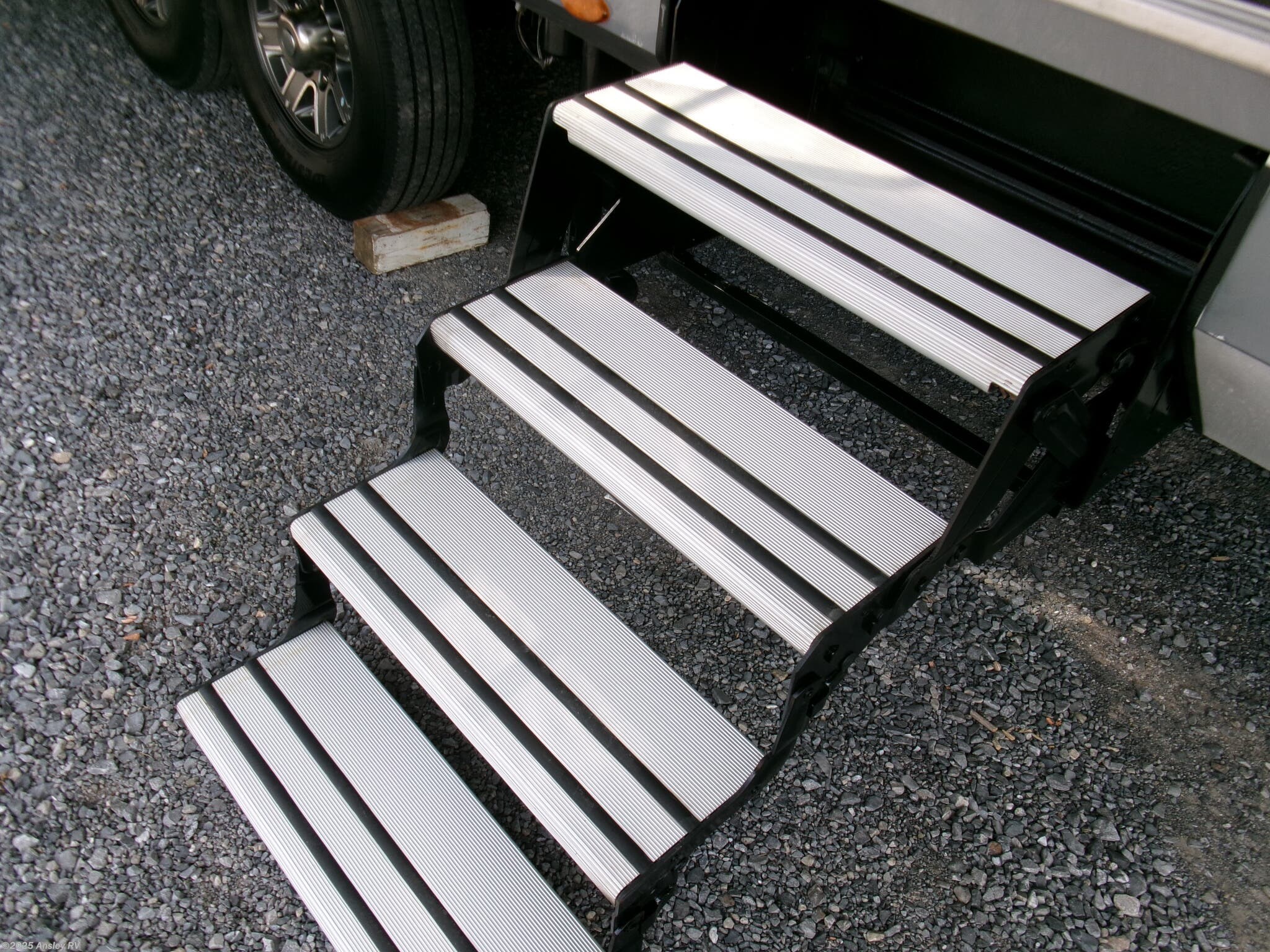 Awning, Exterior Speakers, External Shower, Ladder, Leveling Jacks, Power Roof Vent, Skylight, Slideout -