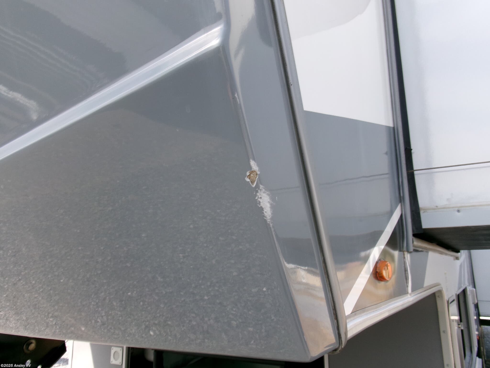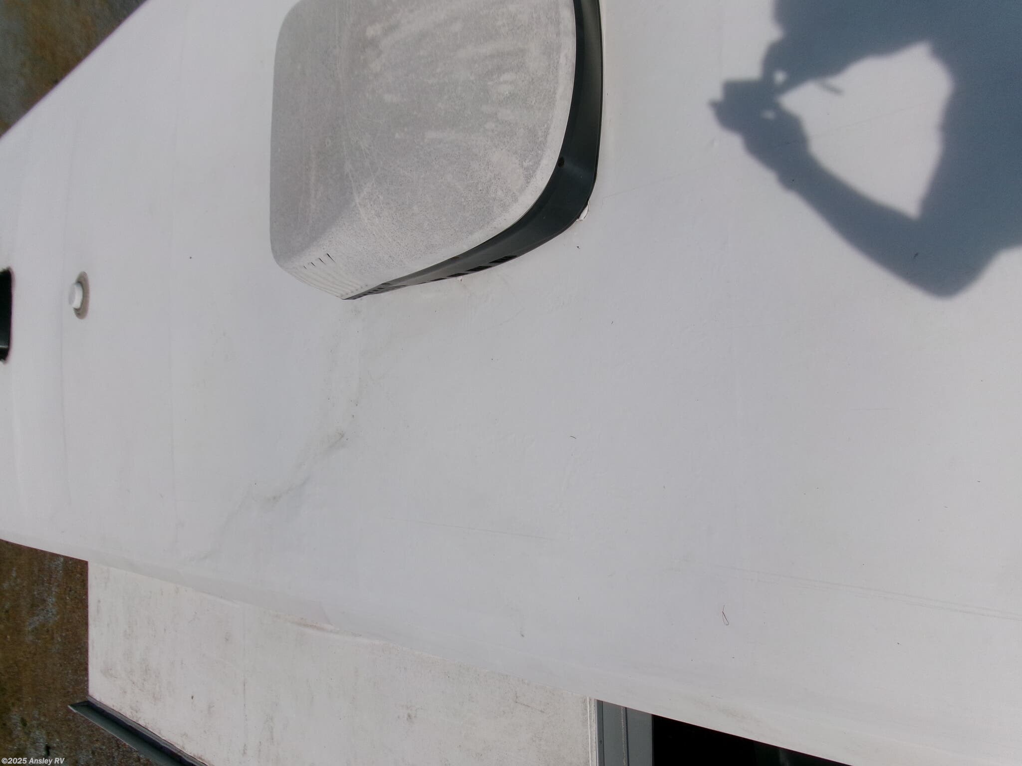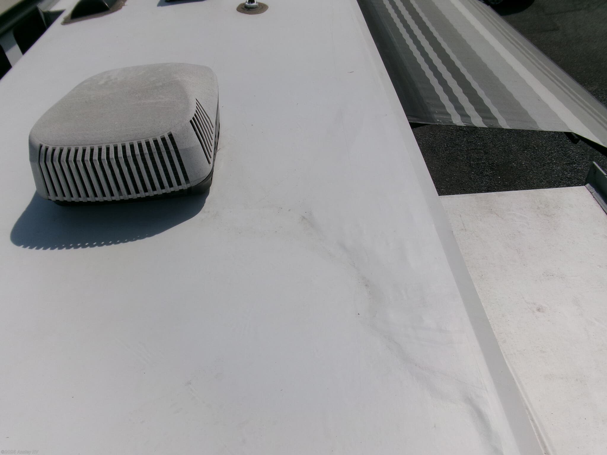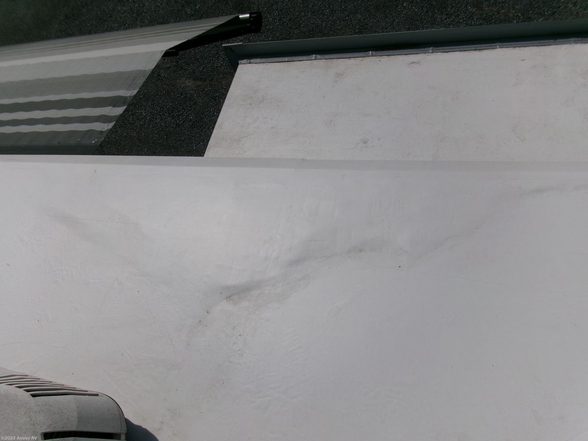 IT IS AS-IS MINOR DELAMINATION ABOVE ENTRY DOOR SIDE SLIDE, SOFT AREA ON ROOF ABOVE THE DELAM AREA. SLIGHT DELAM ON WALL BEHIND THE FURNITURE SLIDE OUT. SMALL AREA BEHIND RECLINERS ON FLOOR IS SOFT. REAR JACK ON ENTRY DOOR SIDE IS BENT BUT WORKS