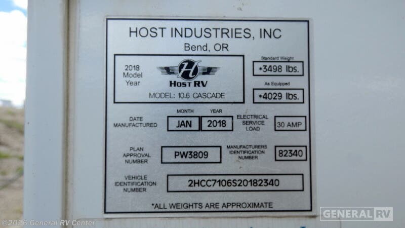 Request More Info on this 2018 Host Cascade HOST CAMPERS 10.5 Offered for sale by General RV Center