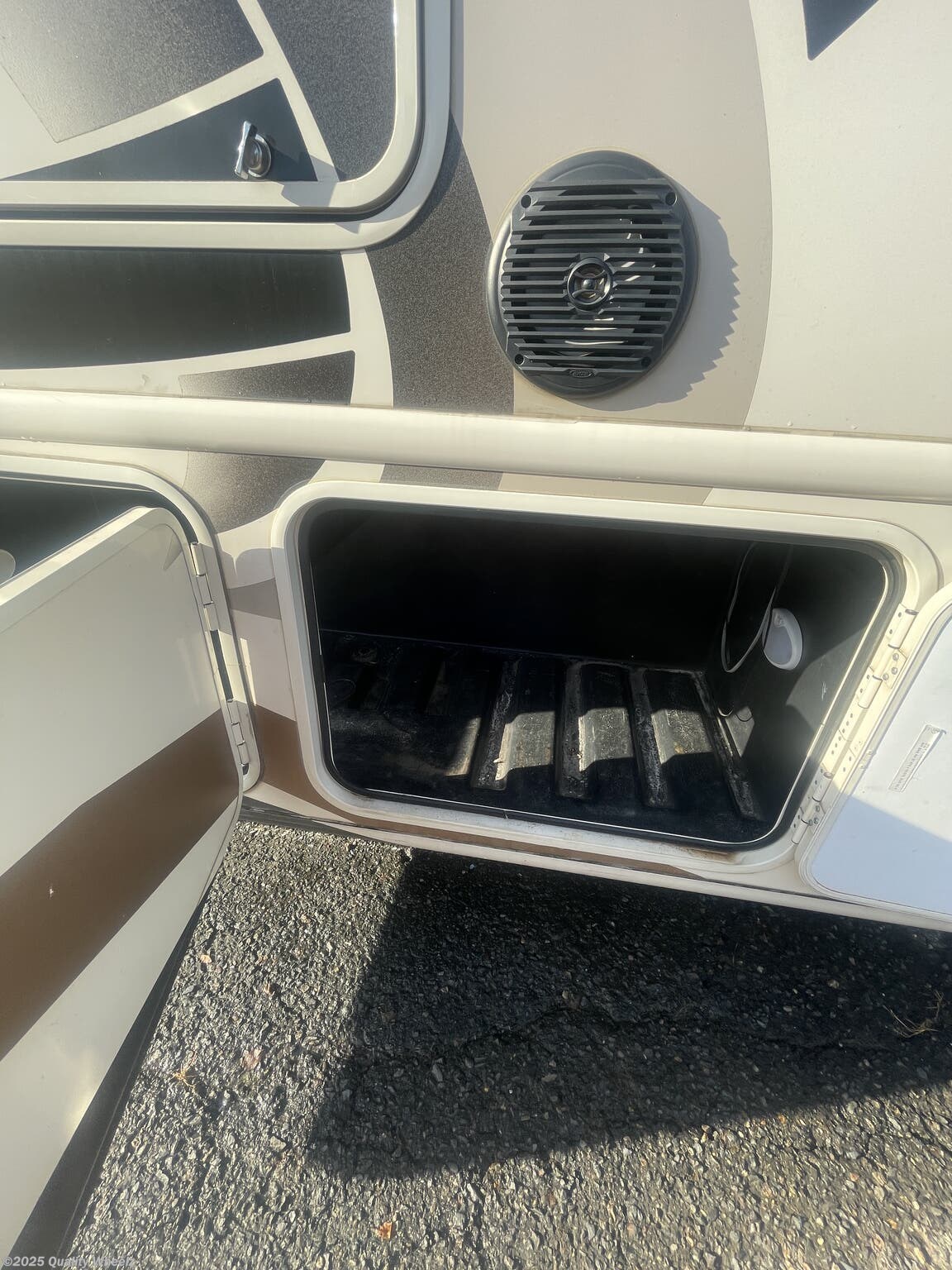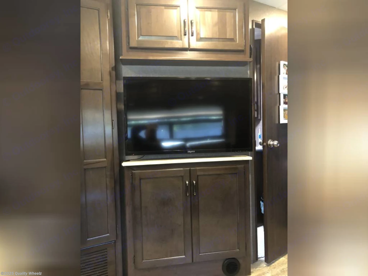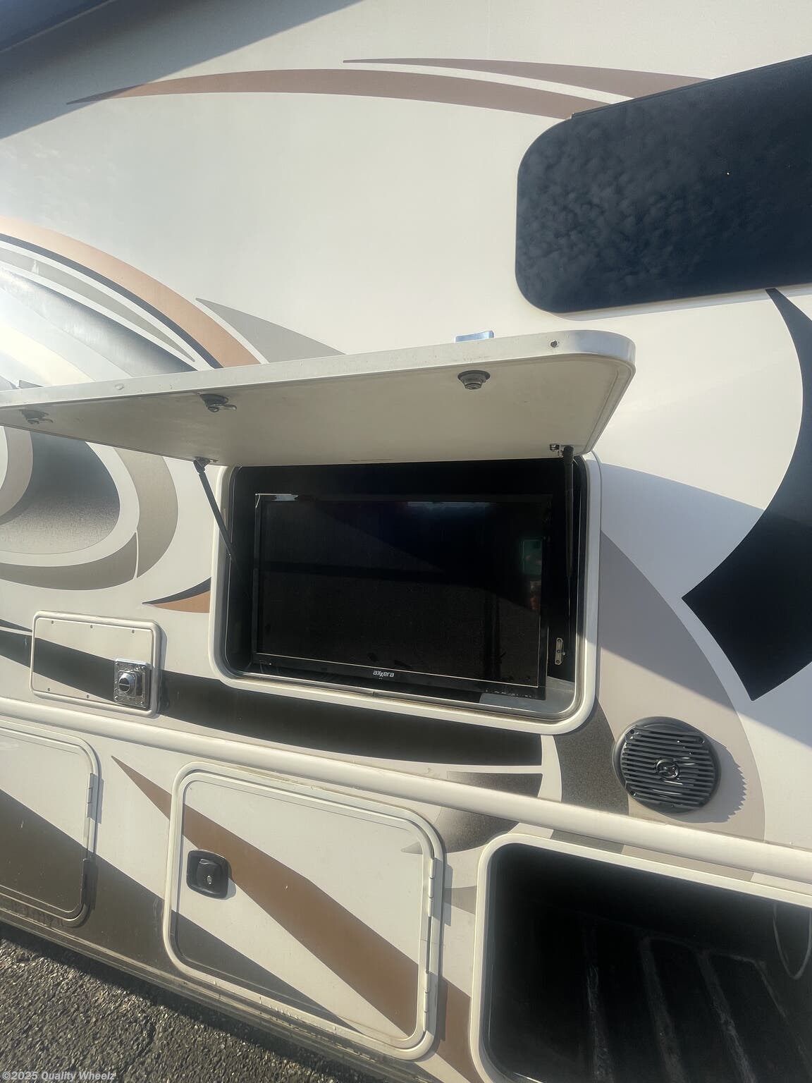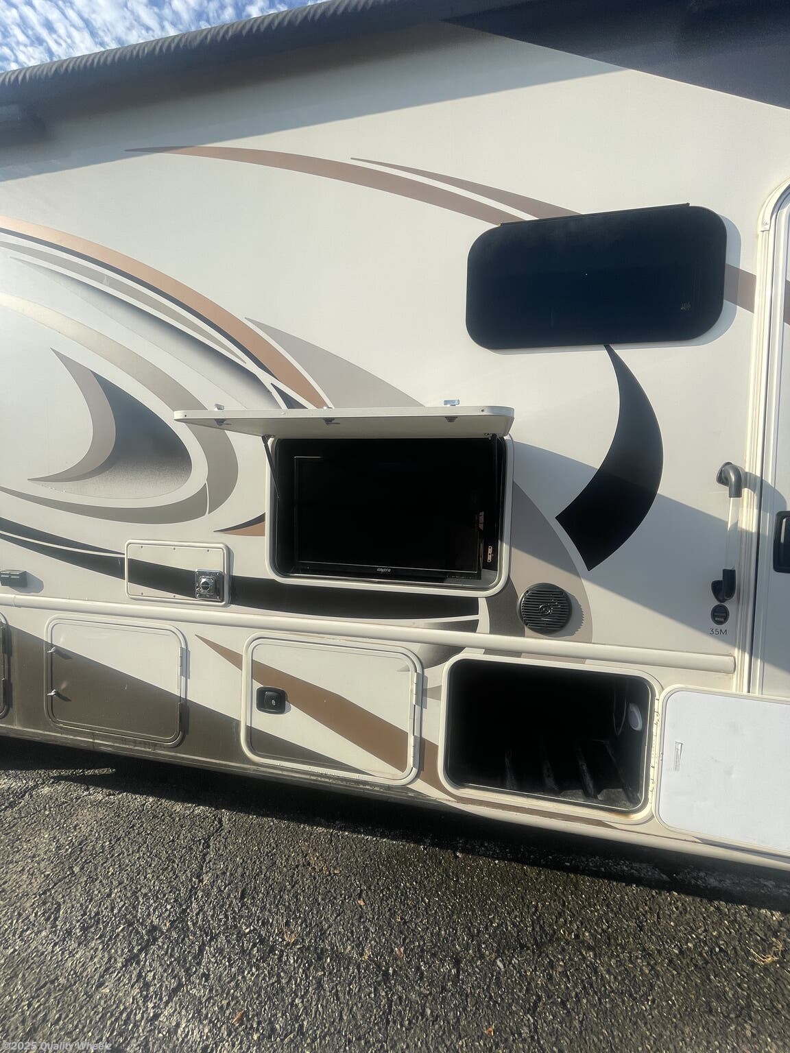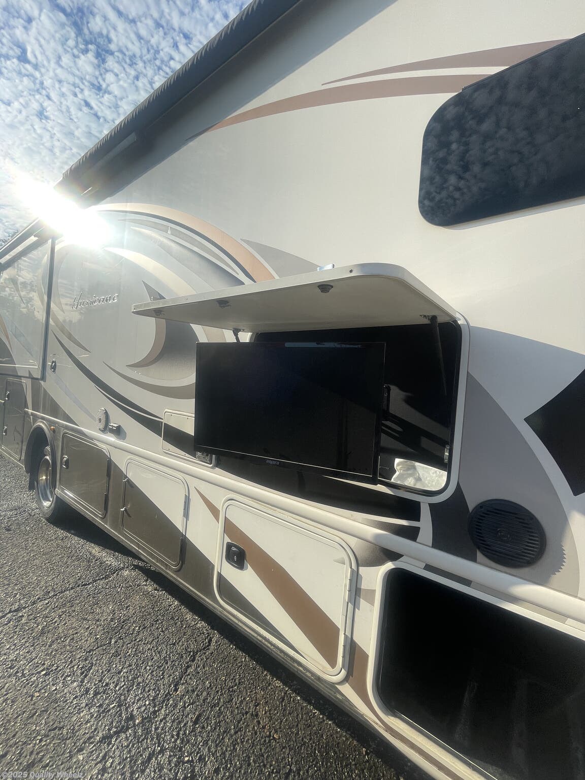 The Hurricane 35M is equipped with an exterior TV, allowing for outdoor entertainment. Whether you're tailgating, enjoying a movie night under the stars, or keeping up with your favorite shows, the exterior TV brings the comforts of home to the great outdoors.