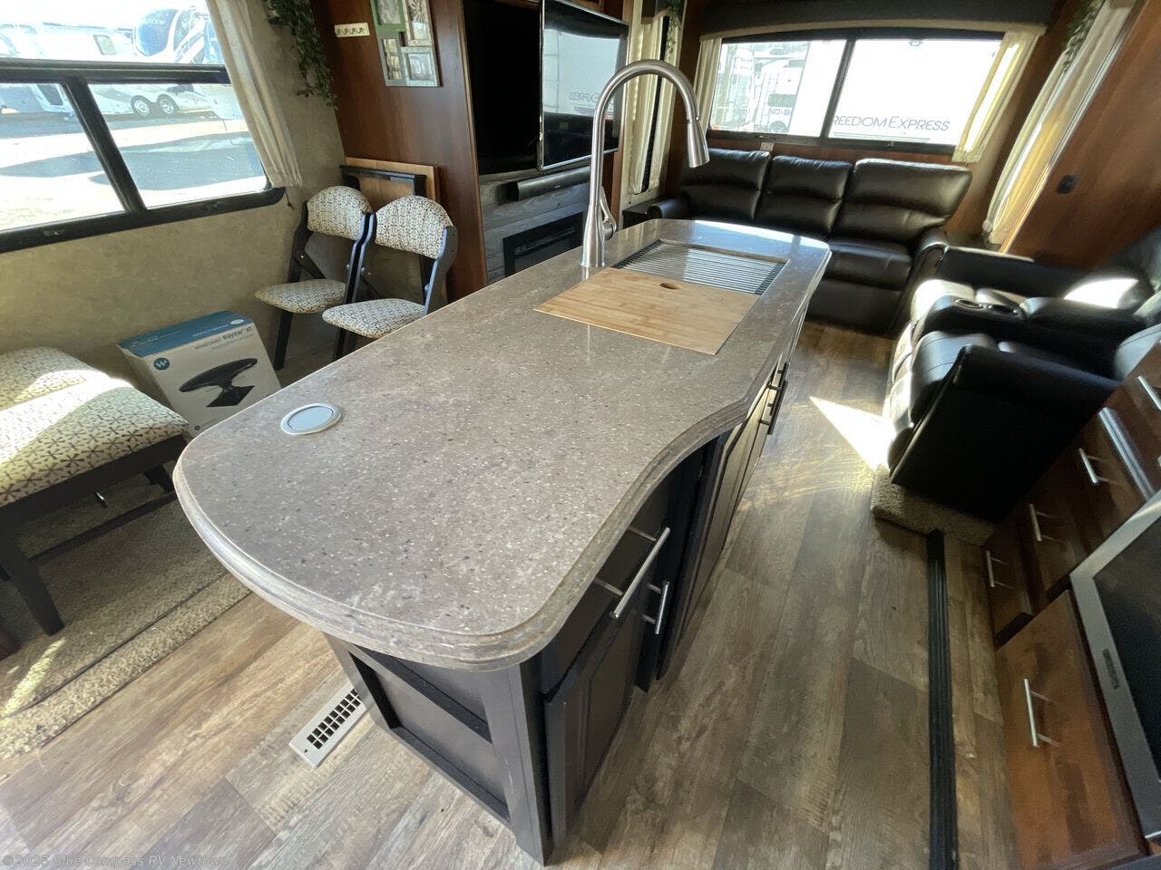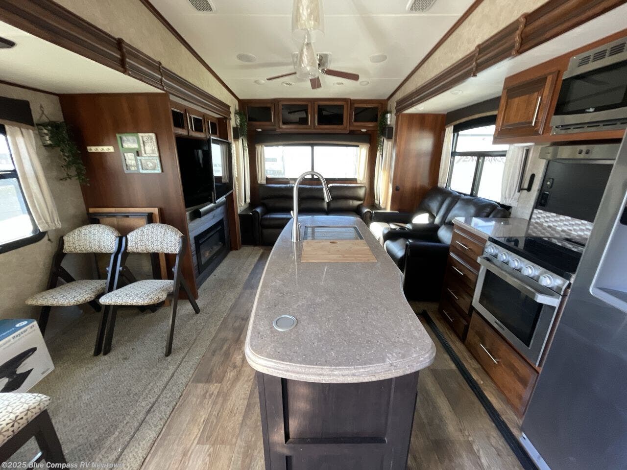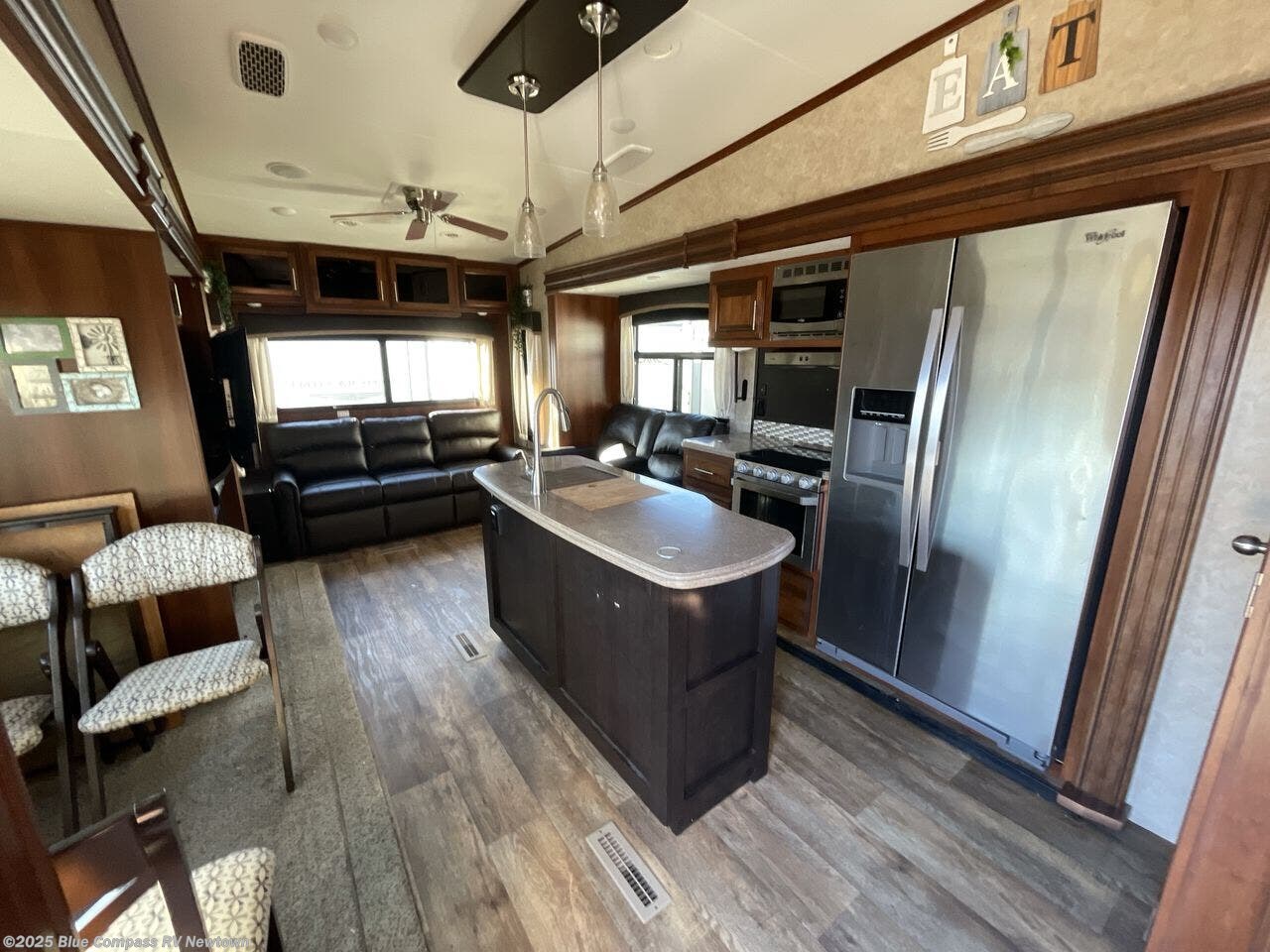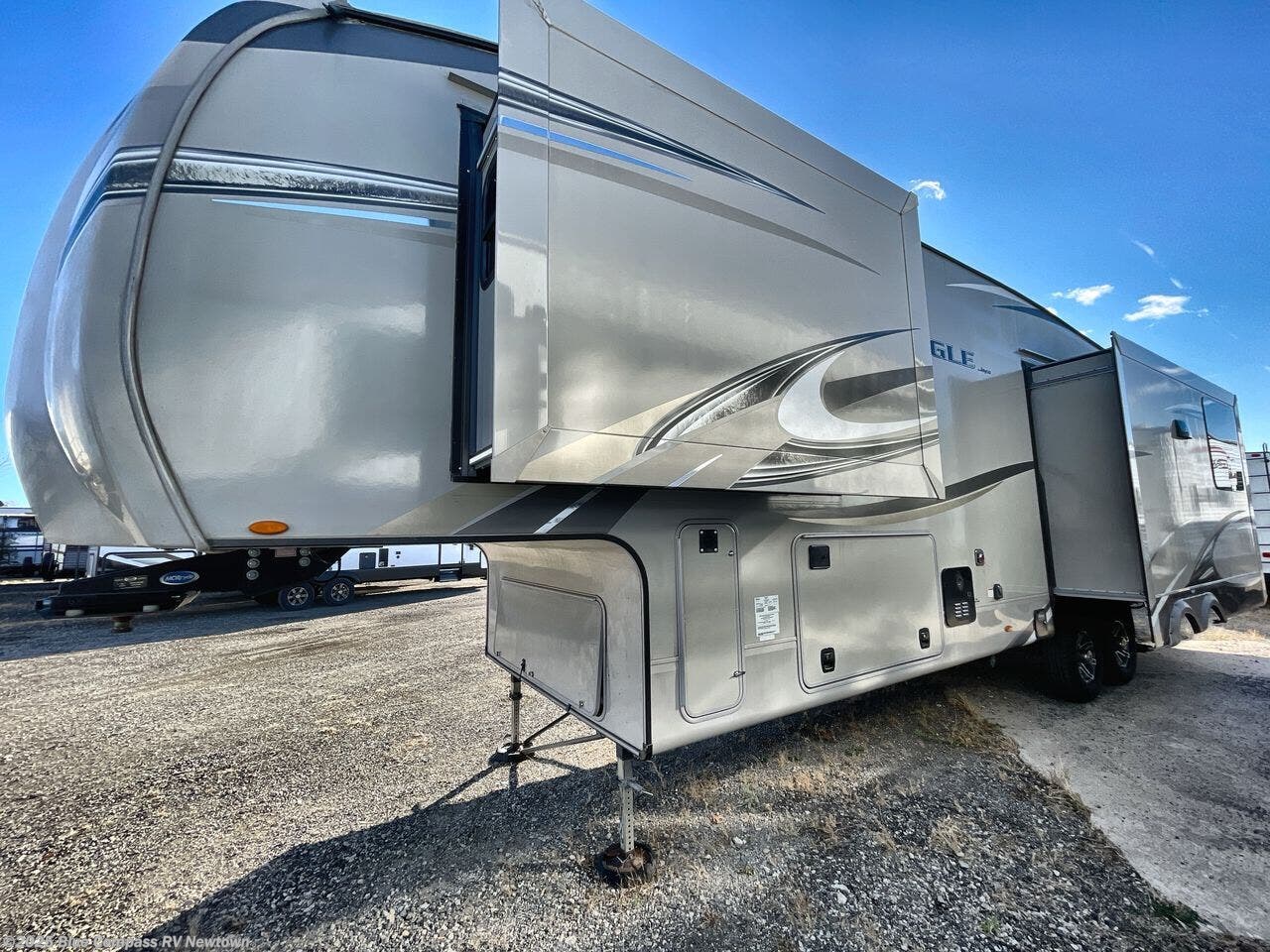 Life just got much more comfortable and luxurious when you take this Eagle fifth wheel to your favorite destinations. Model 317RLOK offers the owner a master bedroom with plenty of storage and a closet prepped for a washer/dryer. The dual slide outs in the main living and kitchen area provide enough room to walk around the kitchen island to get to the residential-style walk-in pantry, or near the LED fireplace on those chilly nights away. You will even find a ceiling fan and theater seats. If you need more entertaining and cooking space, the outside kitchen offers that area. It's time to enjoy your own accommodations wherever you land.