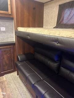 There are bunks on either side of the rear room and one set of the two is situated in the rear room slide.