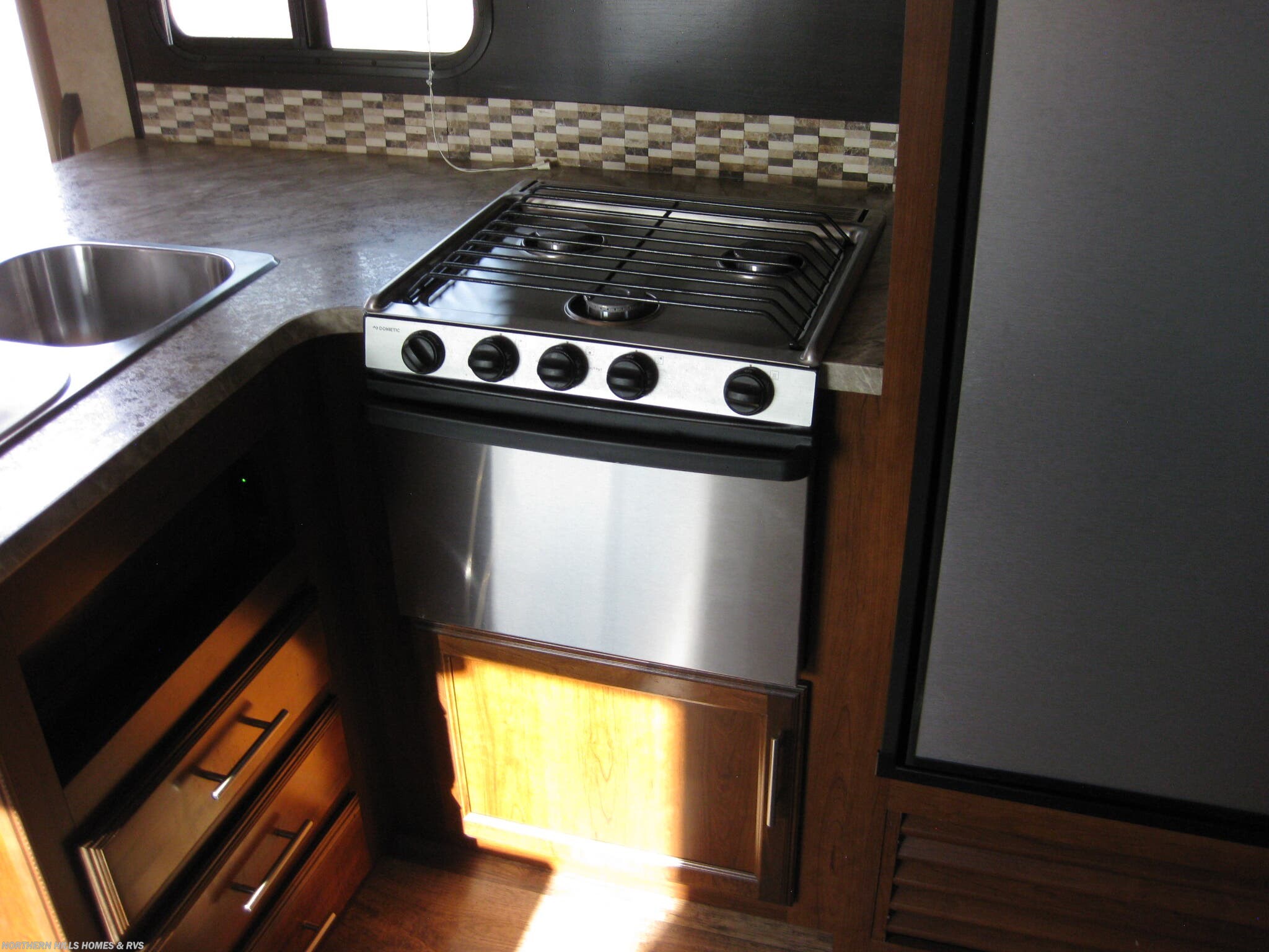 This 2018 Jayco Eagle HT 25.5REOK is an RV the whole family will love. By owning this 2018 Jayco Eagle HT 25.5REOK, you’re joining the Jayco family! The sleep capacity allows you to bring up to 6 along on your travels in this rig. There’s plenty of room for the whole family thanks to three spacious slides. Entertain or cook up a cozy meal just for you in this RV kitchen equipped with the fridge, oven, stove. Spend time together as a family in the living area with the TV. With the free standing dinette w/chairs, you’ve got the perfect place for family meal times. The queen bed makes it a perfect camper for couples. If you like your rig cool in the summer and warm in winter, this A/C option can do the trick. If you’re thinking of heading off grid, this rig has a 42 fresh water tank. The exterior features make camping a breeze, such as awning, exterior speakers, external shower, hitch, ladder, leveling jacks, outside kitchen, power roof vent, skylight, slideout and spare tire kit. An outside shower makes it easier to keep your adventure rig clean. The outside kitchen allows you to enjoy the Great Outdoors at meal time.
