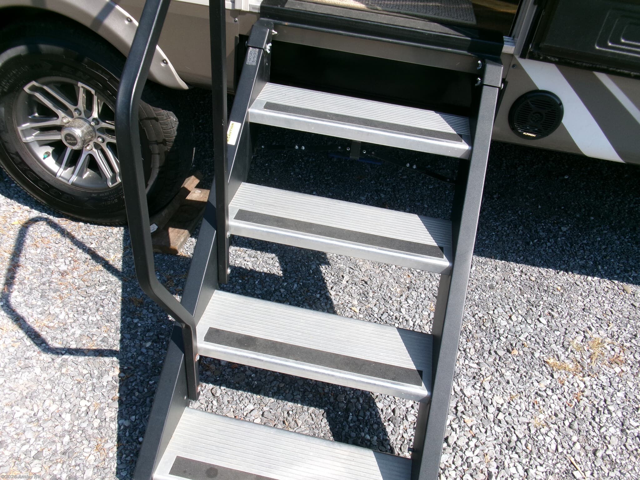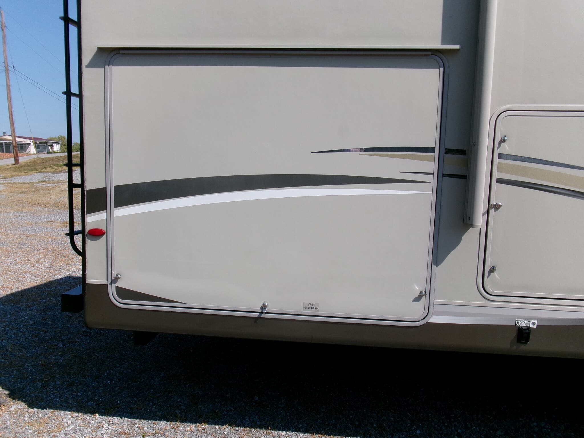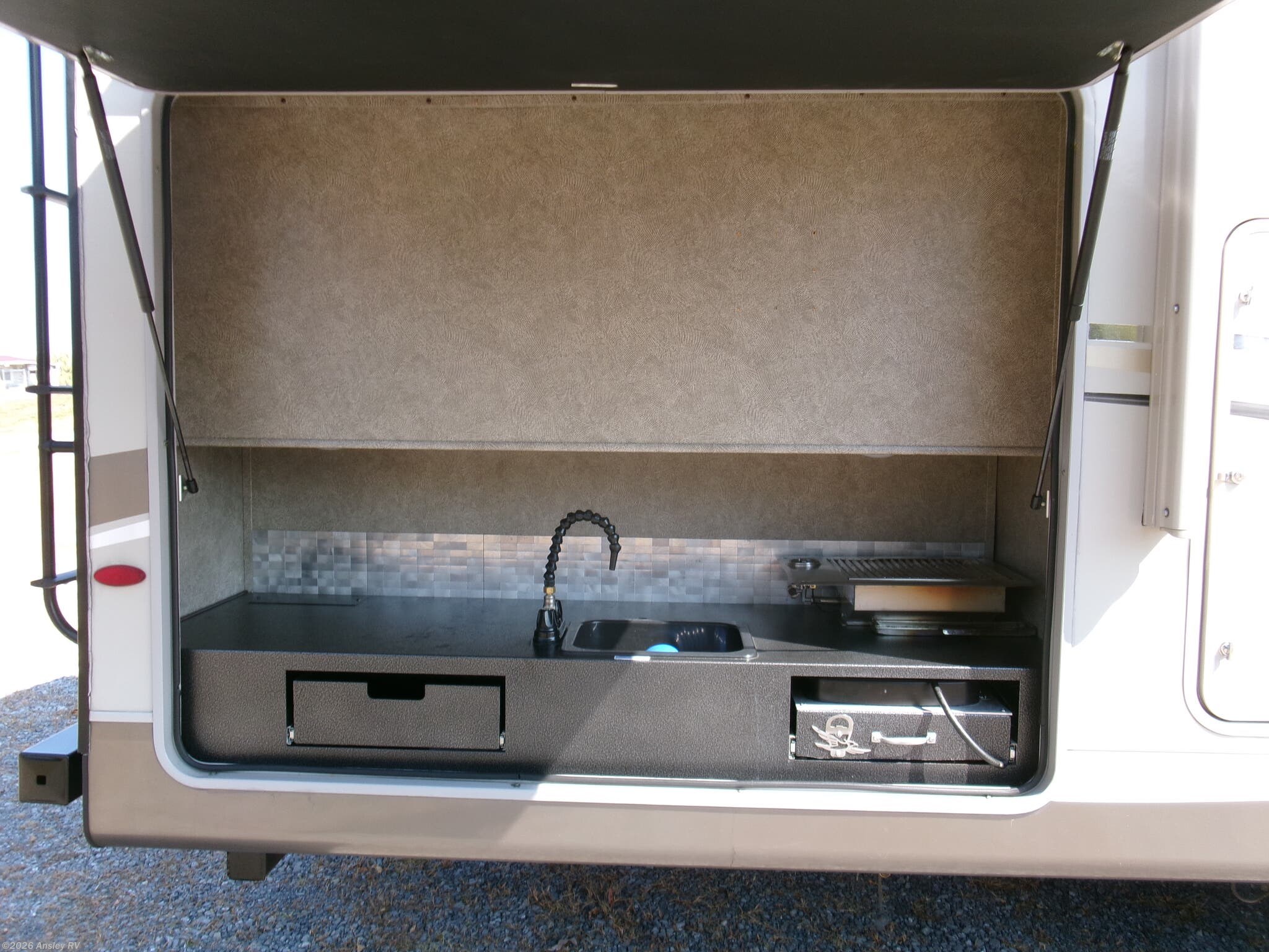 Awning, Exterior Speakers, External Shower, Hitch, Ladder, Leveling Jacks, Outside Kitchen, Power Roof Vent, Skylight, Slideout, Spare Tire Kit -
