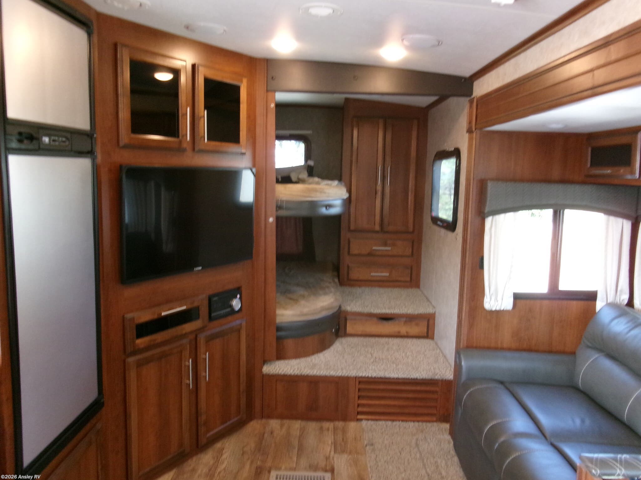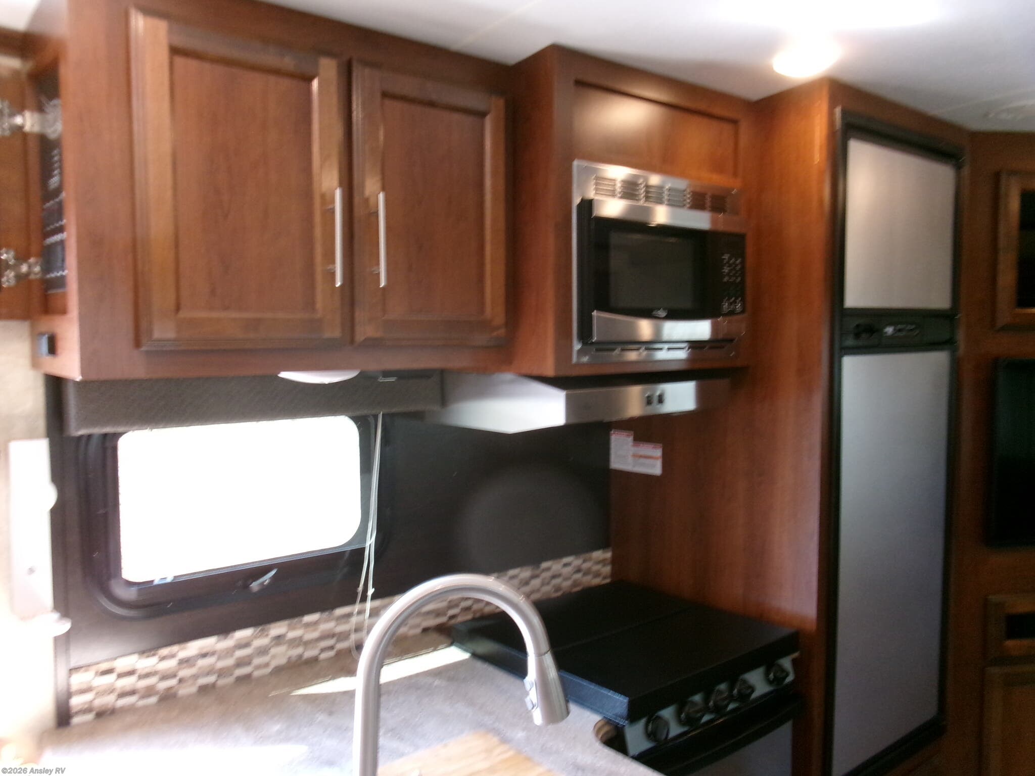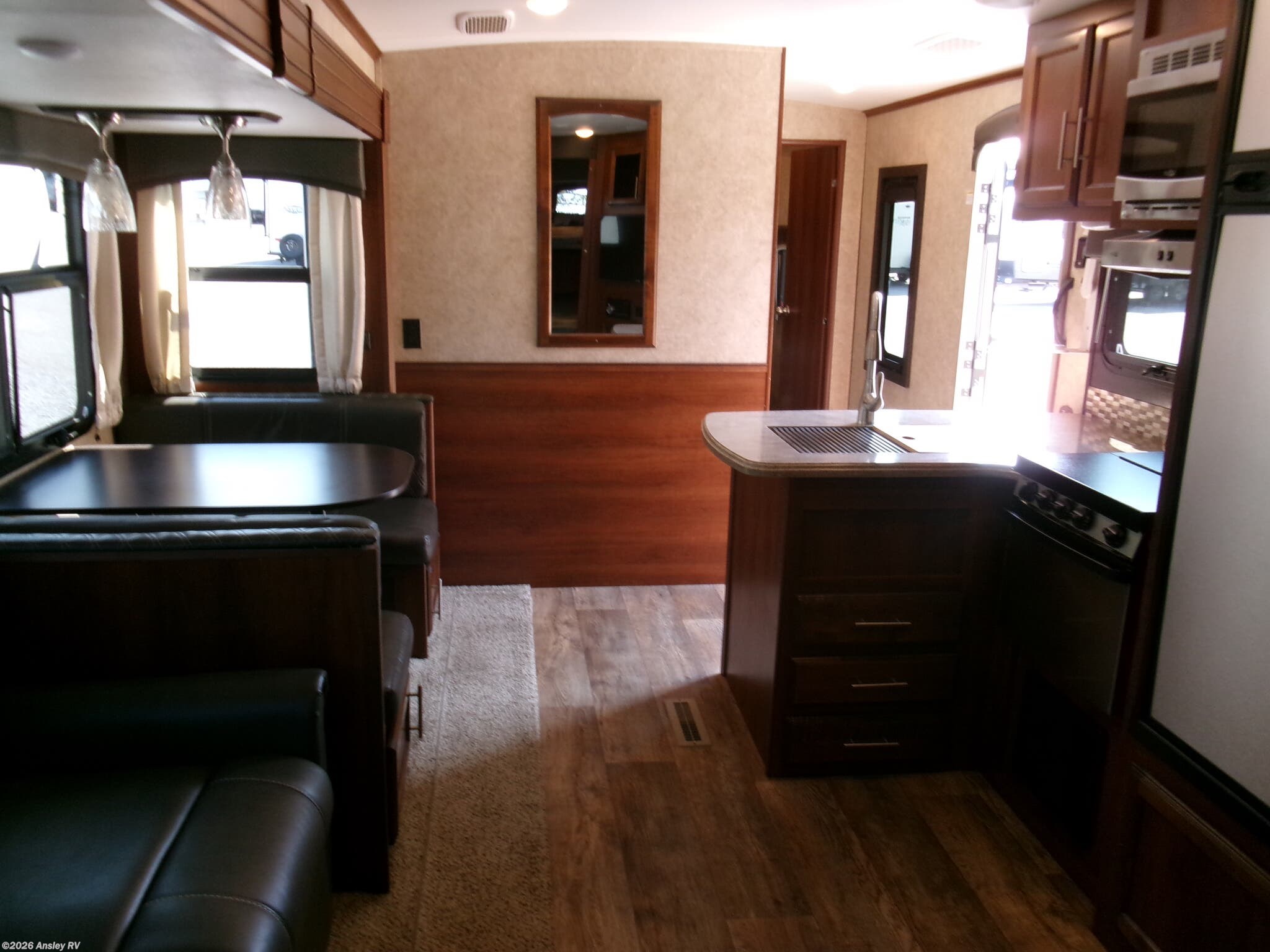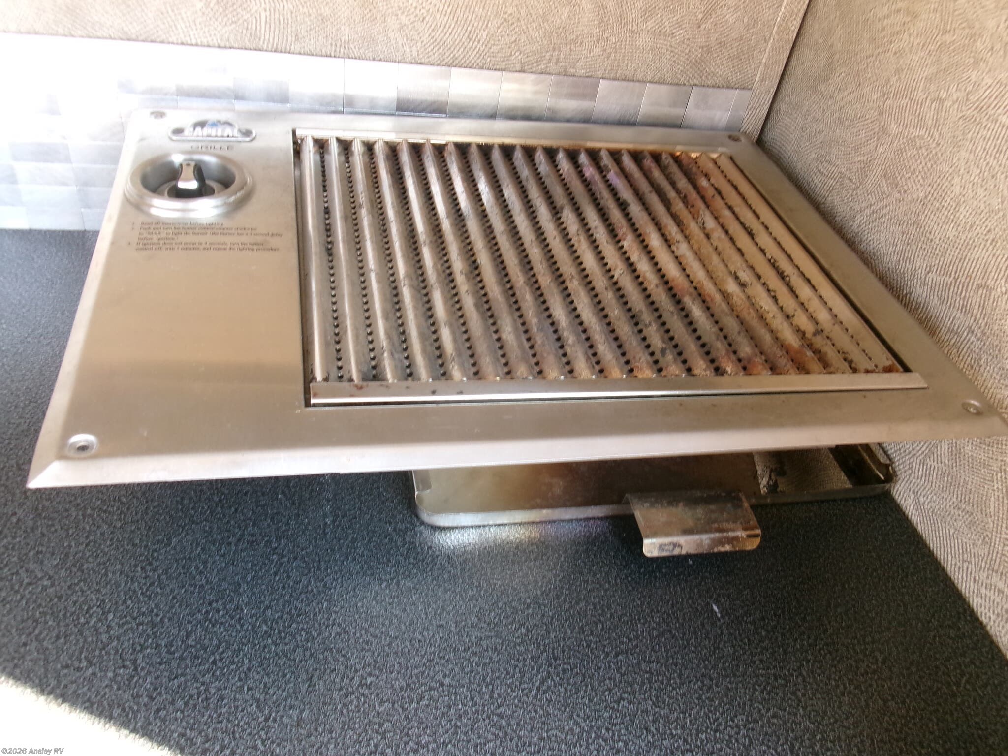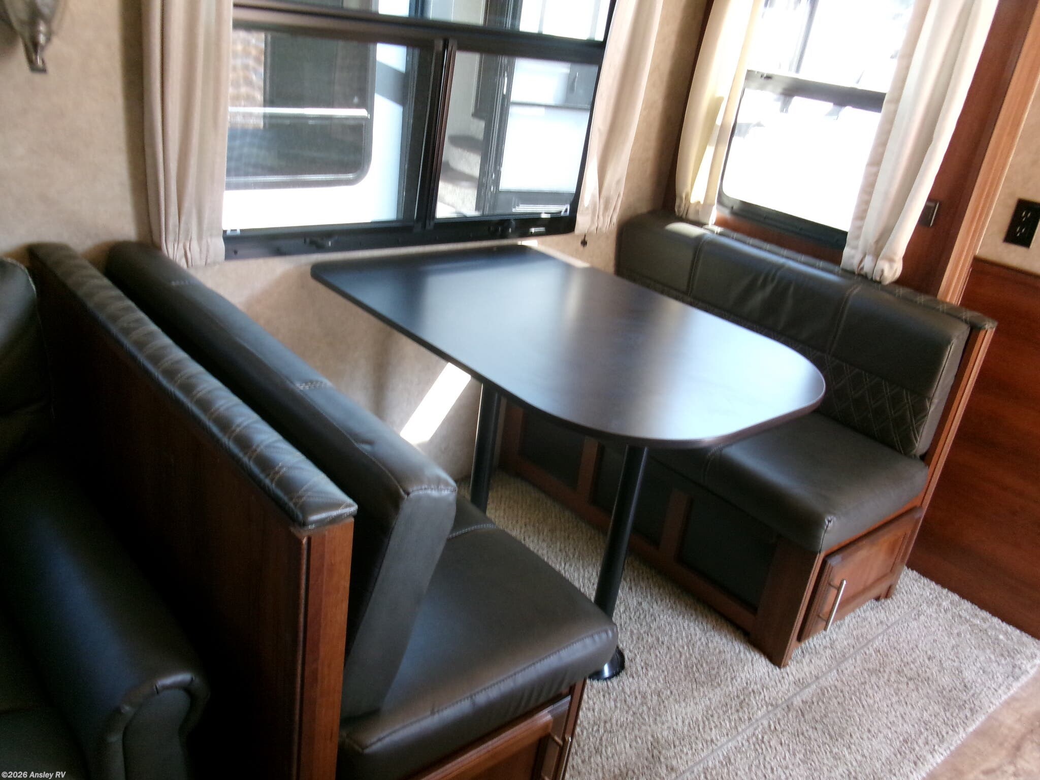 Inside, you’ll find a well-equipped kitchen featuring a microwave, oven, refrigerator, and stove top burner, plus a water heater for comfort on longer trips. The living area centers around a booth dinette and a surround-sound system with a TV, ideal for family movie nights. A queen bed provides a private retreat, while roof vents and a skylight enhance natural light and airflow. This RV’s interior is designed to balance space with practicality for everyday use on the road.